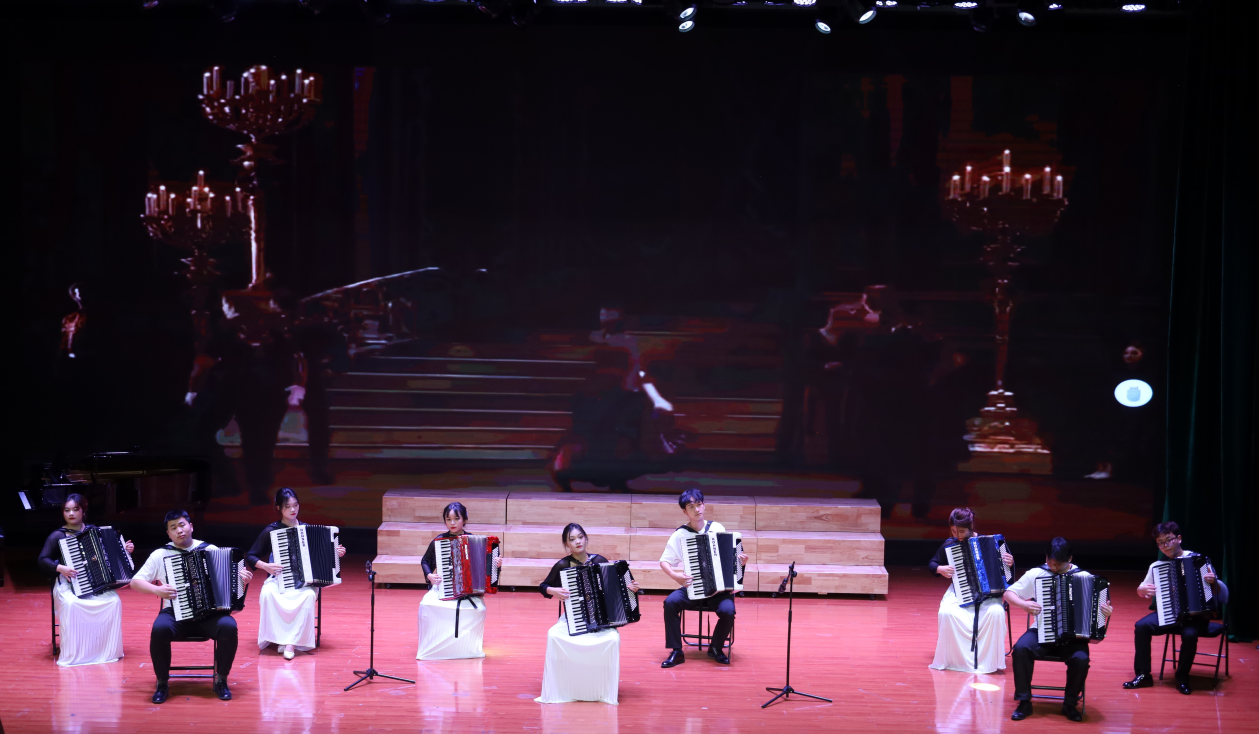 本次音乐会既是williamhill英国官网2024届音乐学专业毕业生大学四年学习成果的集中展示,也是毕业生与母校的深情告别,还是“奋起新时代·艺起向前行”——williamhill英国官网礼赞建国75周年系列活动之一。音乐会汇聚了19首不同风格的中外经典音乐,通过独唱、独奏、合唱、合奏等形式,全方位展示了同学们的精湛技艺和深厚底蕴,以音乐学子特有的方式,向我们伟大祖国表达深深的爱意。