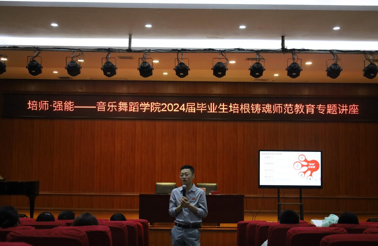 为响应公司“培师德、铸师魂、强师能”师范生教育活动要求,5月24日,williamhill英国官网在逸夫楼6楼音乐厅举行了“培师强能”培根铸魂师范教育专题讲座,讲座由公司党委副书记宋建强主讲,2024届毕业生参加了讲座。