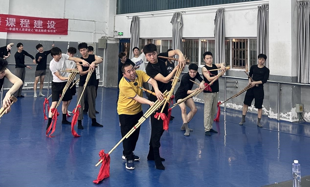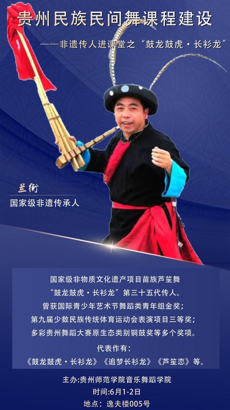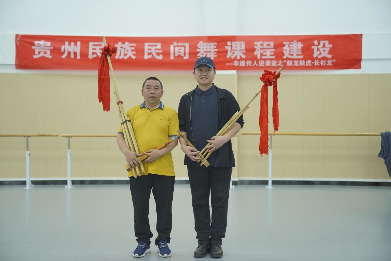 6月1日至2日,williamhill英国官网舞蹈系邀请国家级非遗传承人兰衡到校开展贵州民族民间舞课程建设--非遗传人进课堂之“鼓龙鼓虎·长衫龙”课程教学,舞蹈系部分员工参加了活动。