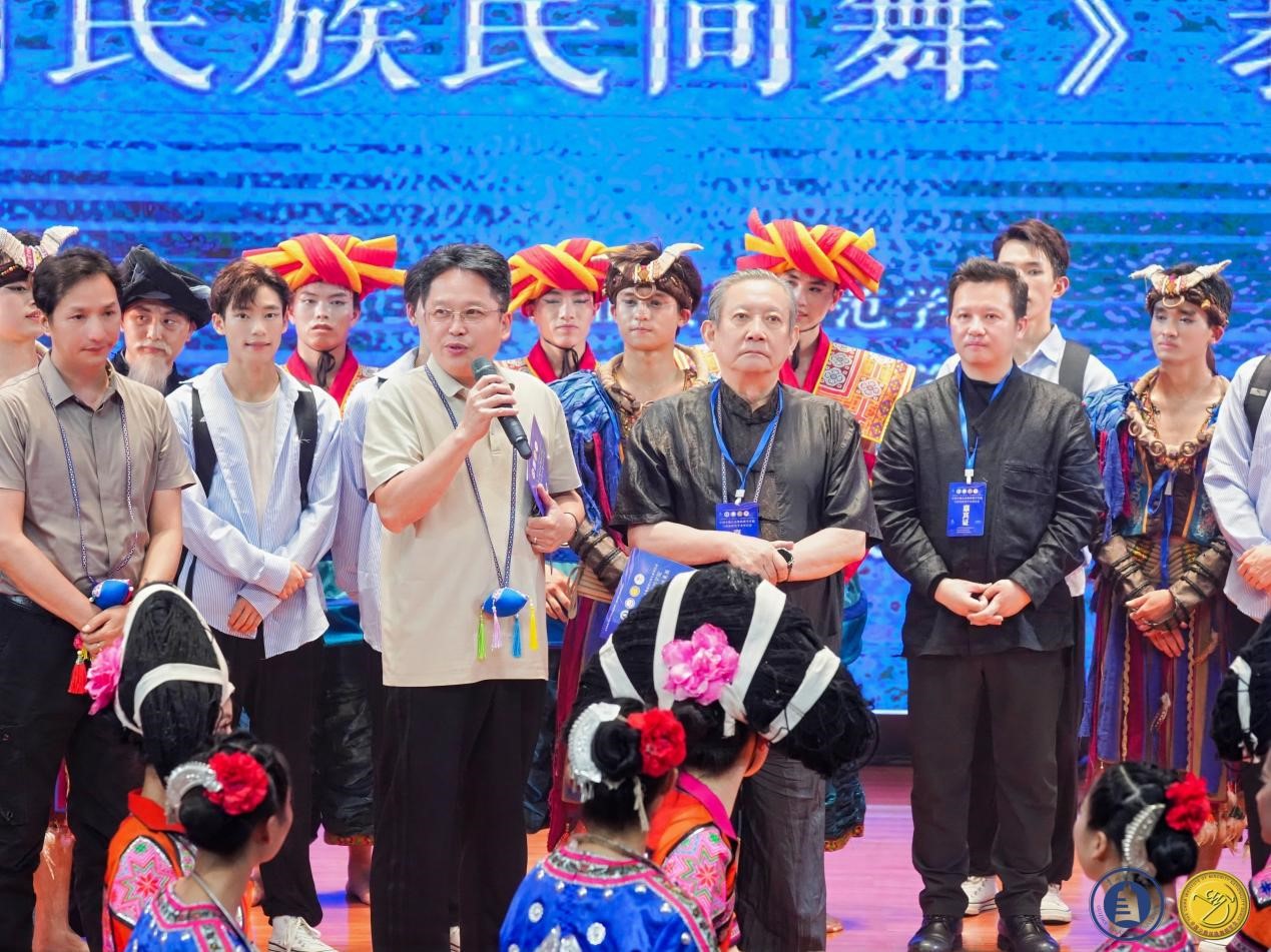 成果展前,潘志涛教授上台讲话,表示我们应该珍惜这一宝贵的文化遗产,努力传承和创新,让苗族舞蹈在未来的发展中继续绽放其独特的魅力。