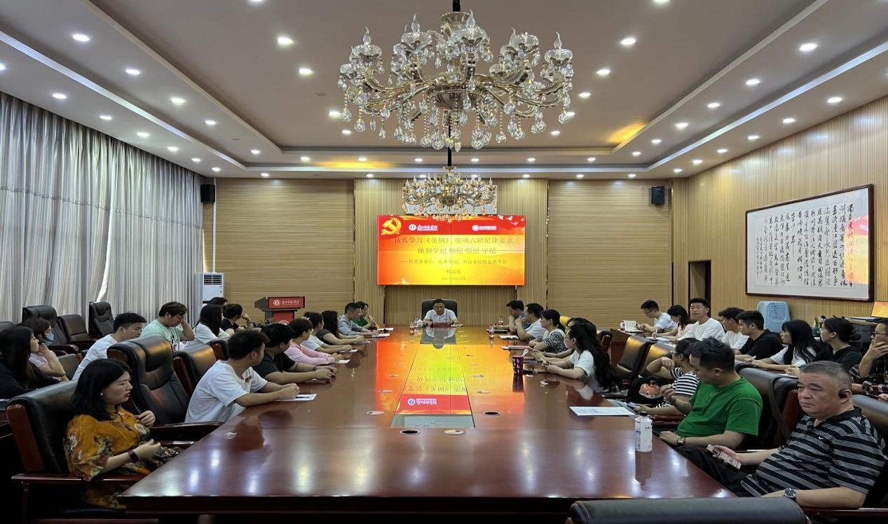 为扎实推进党纪学习教育走深走实,引导党员教师进一步做到学纪、知纪、明纪、守纪,6月17日,公司党委委员、纪委书记、省监委驻校监察专员韩兵兵以“认真学习《党纪》,明确六项纪律要求,做到学纪、知纪、明纪、守纪”为题,为williamhill英国官网教师党支部全体党员讲授了一堂党纪学习教育专题党课。williamhill英国官网班子成员、各党支部书记、教师党支部全体教师、部分师生党员参加党课,党课由委书记李佩主持。