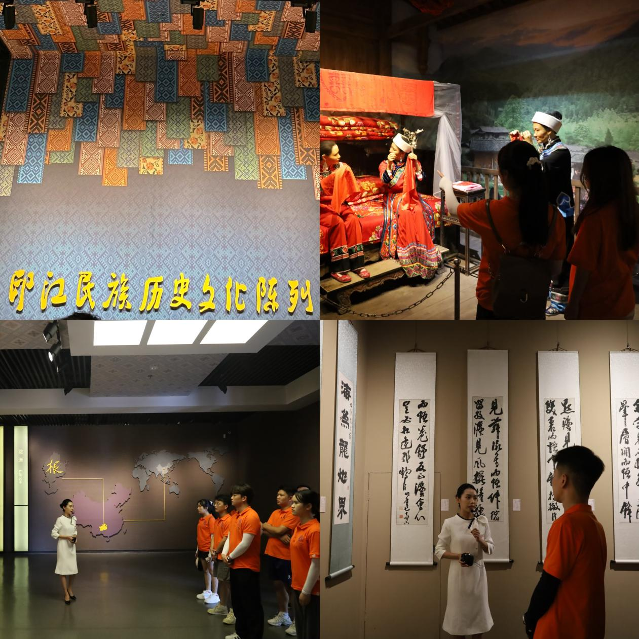 下午,志愿服务队抵达印江县博物馆。志愿者们在这里深切感受到了印江民俗文化底蕴丰厚的魅力,进一步增强了历史自觉,坚定了文化自信。在参观书法作品时,队员们了解了印江县“书法之乡”的由来,并深入感受了书法艺术的博大精深。印江民族历史文化陈列则全面展示了印江地区的丰富文化内涵,从传统民族建筑到印江民族歌舞花灯戏,从土家族哭嫁习俗到制陶技艺,再到传统习俗祭风神以及神秘的傩戏文化,每一项内容都让队员们仿佛穿越时空,亲身体验了印江地区悠久的历史与灿烂的文化。