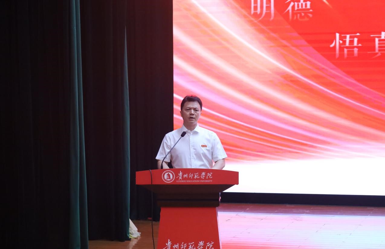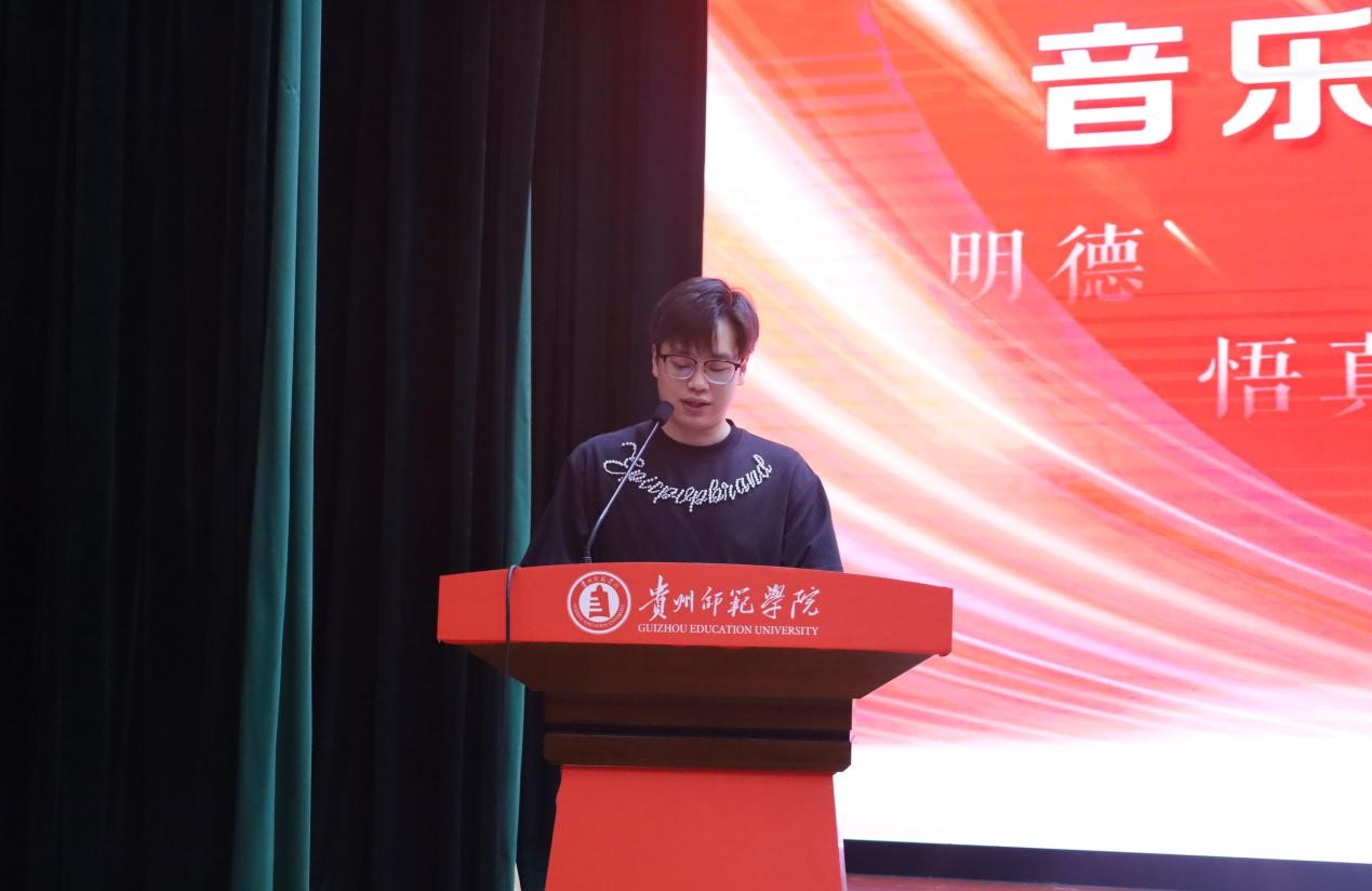 2021级音乐学胡超同学代表老生发言;2024级舞蹈学史佳宁同学代表新生发言;教学事务管理科科长刘科作为教师代表进行发言。