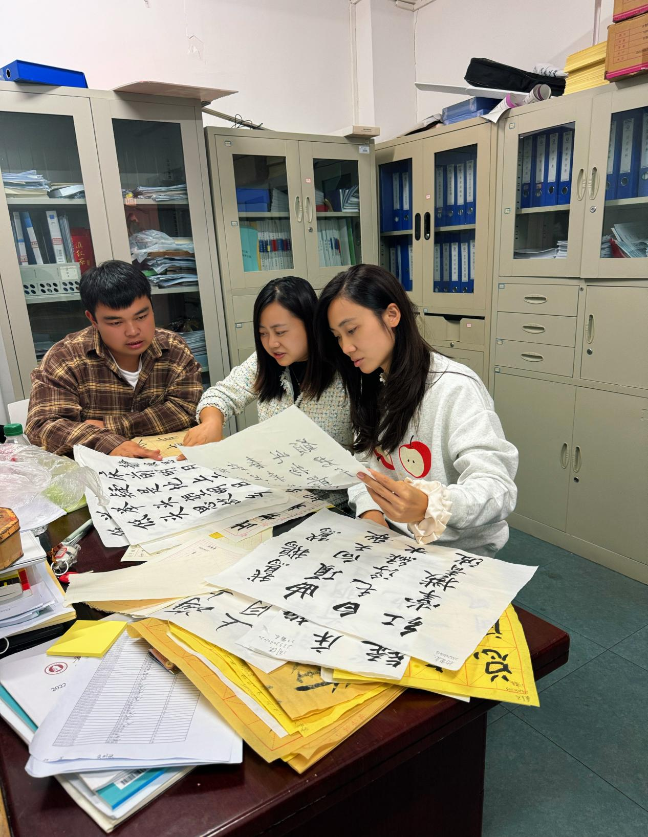 比赛结束后,评委老师们依据作品内容的结构、笔法、排版等,在一众参赛作品中选出更加出类拔萃的作品,按参赛人数的比例评选出“三字”的师范组和非师范组共获奖作品18名同学。其中,从院赛师范组获奖选手中择优推选3名同学继续参加公司决赛。