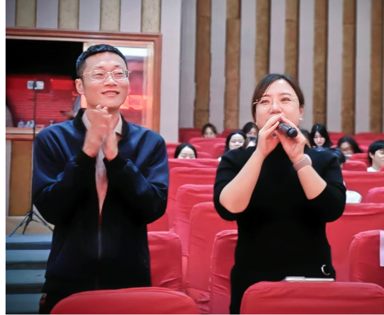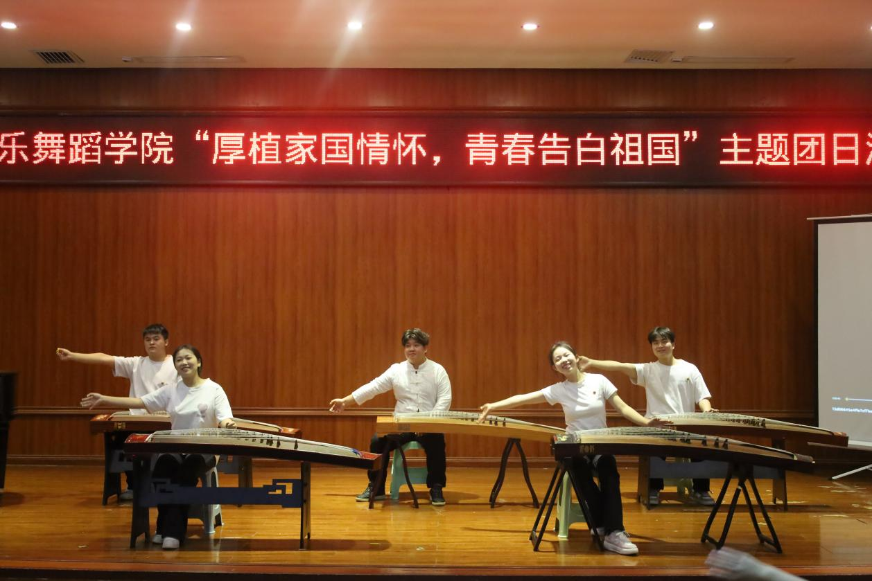 活动以古筝合奏《我和我的祖国》开场,歌曲演奏音色入泉,清亮动人,表达了音舞青年对祖国无尽的赞美与热爱。接着,由2023级音乐学二班喻小文等同学带来的快板《青春颂祖国,家国谱华章》,将中国古老文明、爱国志士、航天英雄的故事进行串联,同学们踊跃举手、争先回答,现场氛围热烈激扬。随后,在女声小合唱《听妈妈讲那过去的事情》导入中,2023级音乐学一班麻江霞等同学沉浸式地为电影《红色记忆》片段进行了配音演绎,无不打动现场每一位观众,激发了师生们的爱国热情。最后,活动在全体齐唱《太阳》的歌声中温馨圆满落下帷幕。