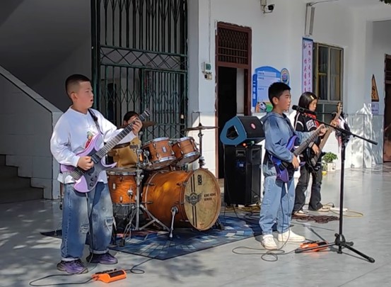 在乐队社团展示环节,大家观摩了大湾镇海嘎小学员工乐队——“海嘎少年”表演的精彩节目,聆听了大湾镇开化小学员工乐队和合唱团的精彩节目。