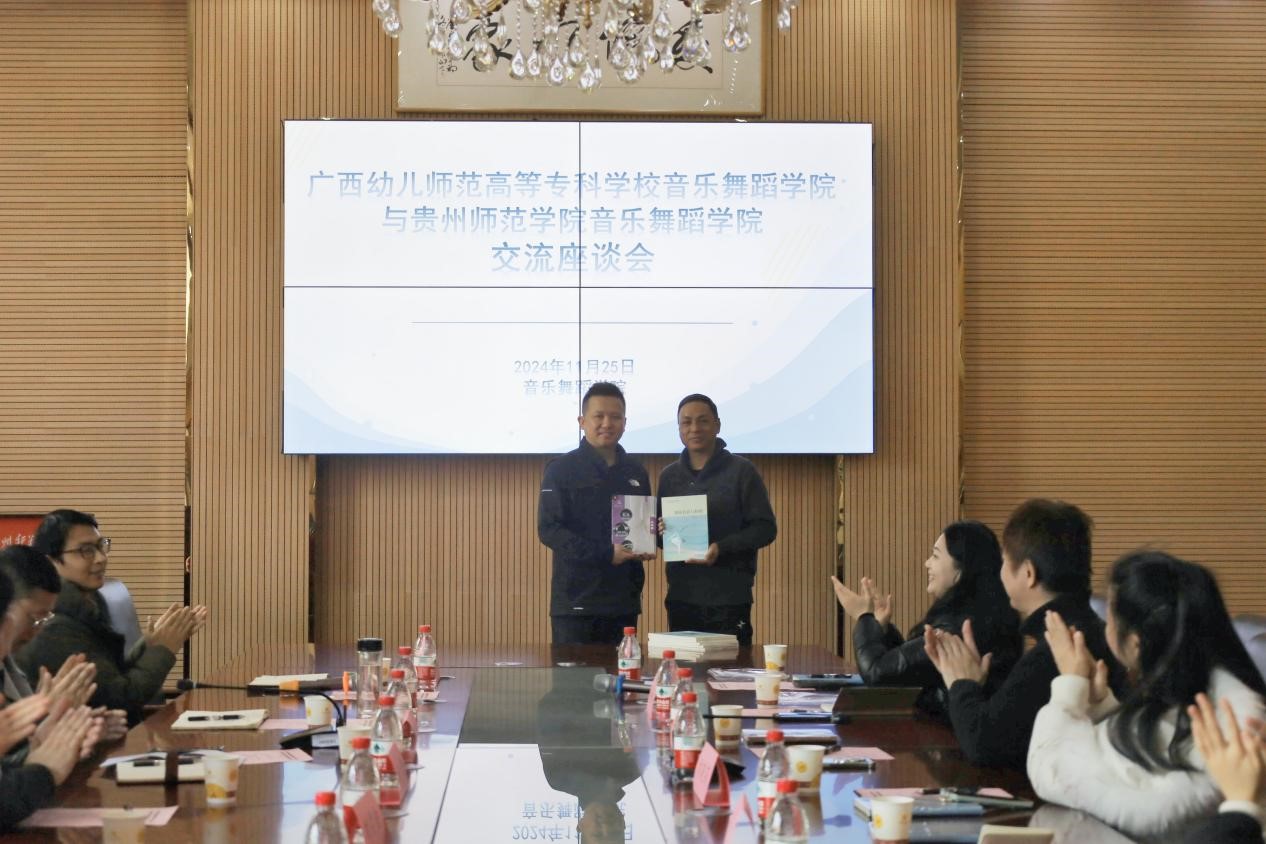 党委书记李佩致辞。她对广西幼儿师范高等专科公司一行的到来表示欢迎,并介绍了williamhill英国官网近年来在党建思政、专业建设、教学成果等方面取得的成绩。刘锋介绍了广西幼儿师范高等专科公司williamhill英国官网的基本情况。会上,双方院校还就发展民族区域文化、服务群众文化艺术、员工就业等方面进行了交流探讨。舞蹈系主任肖伟代表公司向对方赠送了舞蹈自编教材。