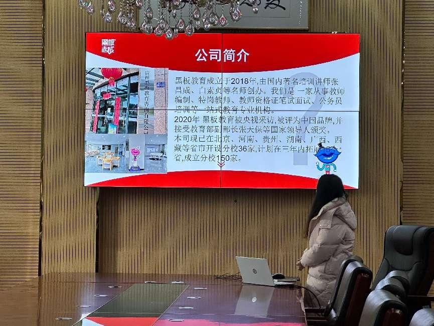 贵州黑板教育有限公司招聘负责人通过PPT详细介绍关于我们。随后,对招聘岗位进行全面讲解,明确各岗位的职责、任职要求,以及为员工提供完善的培训体系、广阔晋升空间和有竞争力的薪资福利待遇,本次招聘涵盖培训教师、教务管理等多个岗位。