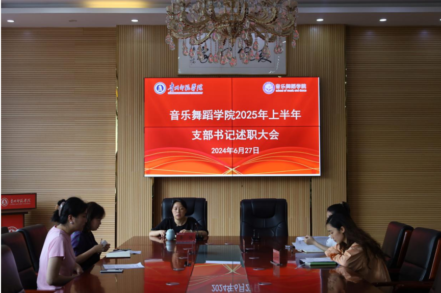 各党支部书记依次进行述职汇报。音乐系员工第一党支部支委委员郭媺率先围绕党员思想建设、理论学习活动开展等内容,详细阐述了支部在推动党员政治素养与专业能力融合发展方面所付出的努力。音乐系员工第二党支部书记邹力征着重分享了支部在组织生活创新、主题党日活动策划等工作中的实践成果,充分展现出支部活动的丰富性与吸引力。舞蹈系员工党支部书记李金容聚焦专业特色,介绍了支部将党建工作与舞蹈教学、艺术实践紧密结合,实现专业发展与党建工作同频共振的具体做法。教师党支部书记谭娇艳从党员先锋模范作用发挥、服务师生举措等角度出发,讲述了支部在凝聚师生力量、助力公司建设过程中的积极实践与成效。