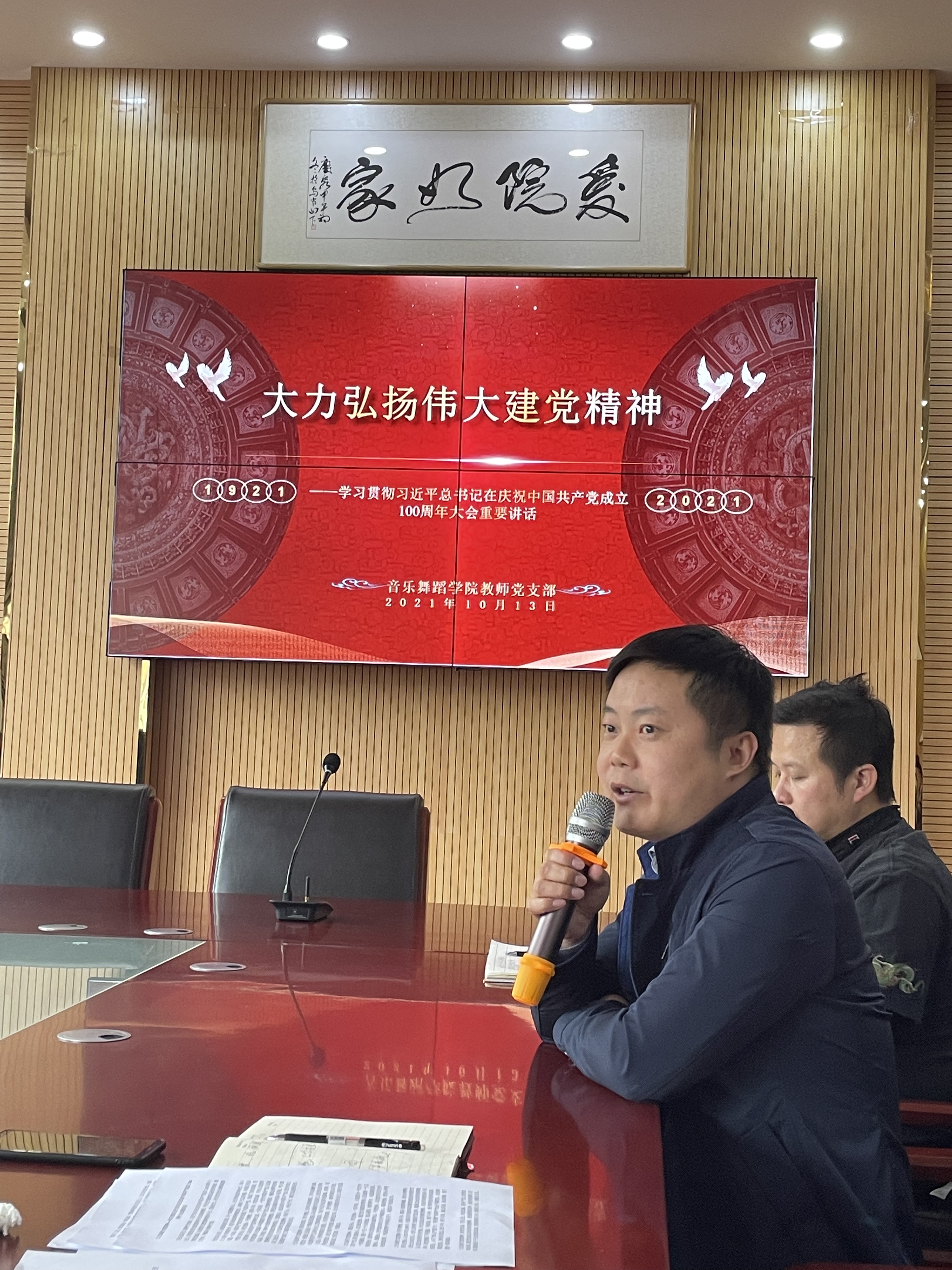 接下来,王晓、肖伟、陈玉莲等同志分别做了主题发言。他们都从各自的工作岗位职责出发,结合工作实际,号召全体党员作为新时代的教育工作者要用伟大建党精神指导工作、生活,既锤炼自身政治品格,又践行教书育人使命,继续弘扬光荣传统、赓续红色血脉,为培养德智体美劳全面发展的社会主义建设者和接班人持续奋斗。