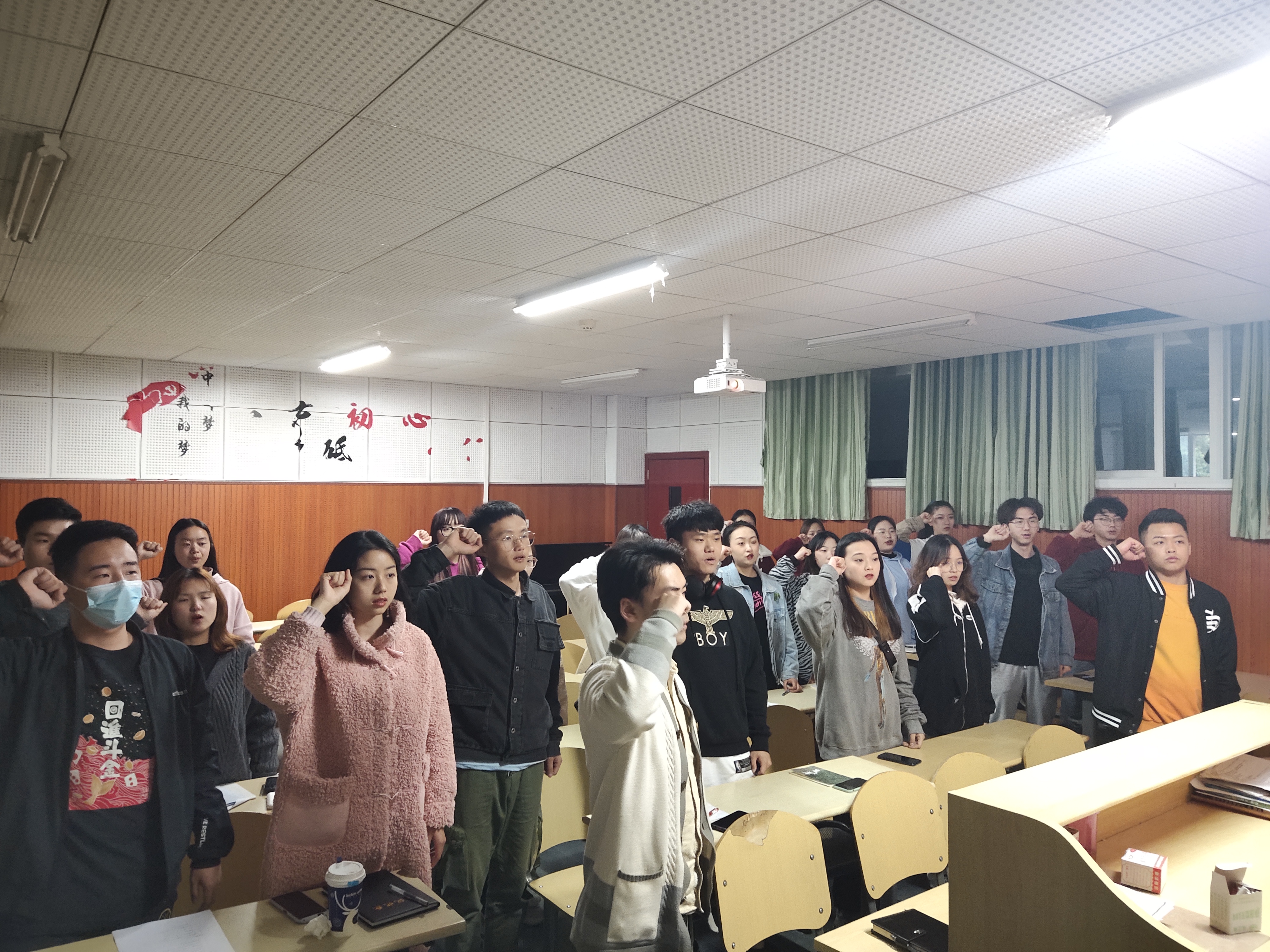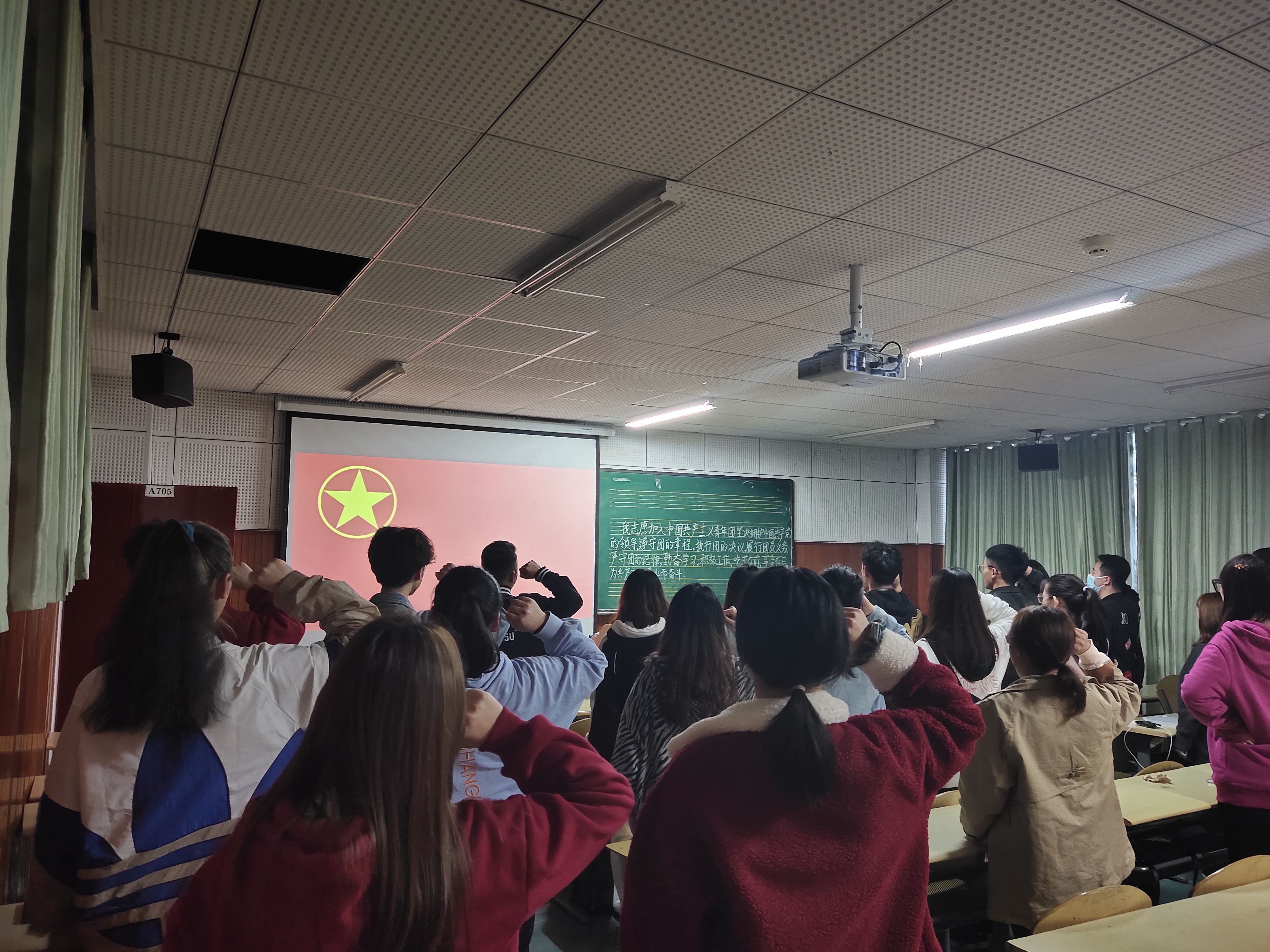 活动伊始,江远强作为领誓人带领大家庄严宣誓。大家在团旗下庄严地举起右手诵读入团誓词,铿锵有力的声音是团员们赤诚的爱国之心。