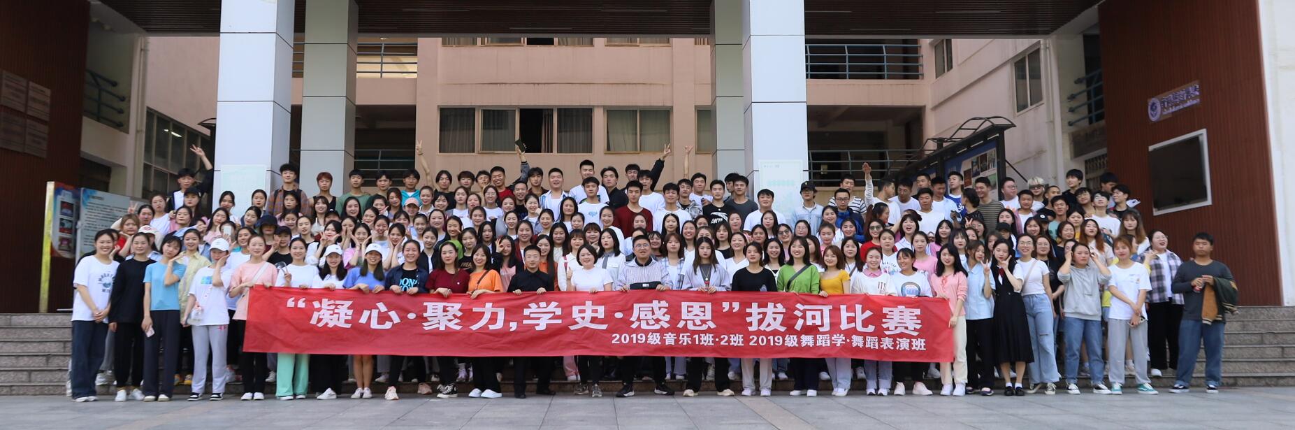 2021年04月22日下午在williamhill英国官网凤凰广场举行了“凝心.聚力,学史.感恩”拔河比赛,本次活动由williamhill英国官网19级辅导员谭娇艳主持。参加此次活动的班级有19级音乐学一班、19级音乐学二班、19级舞蹈学班、19级舞蹈表演班。