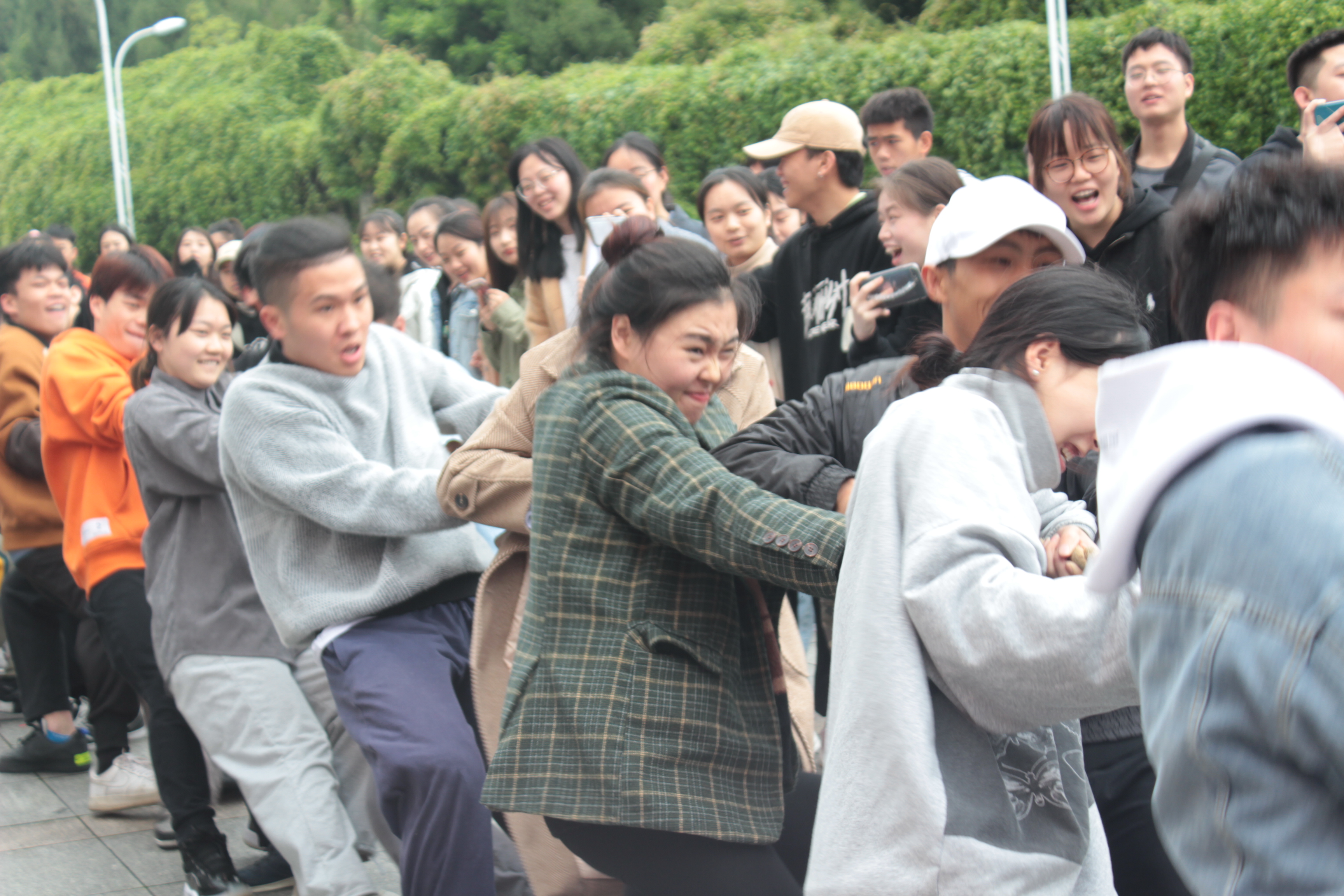 活动初始,任凯新对此次活动的目的及流程进行简要概述,激励同学们在此次活动中都能劈波斩浪,不留遗憾。随即,由各班团支书抽签决定出场顺序进行啦啦队PK,现场啦啦队队员们个个激情饱满、热情高涨,将现场的火热氛围推向高潮。紧接着是激动人心的拔河比赛,在双方队伍胜负难分的时刻,大家毫不退却,咬紧牙关,坚持到底。经过激烈的耐力、体力较量,最终2018级舞蹈学班夺得桂冠。