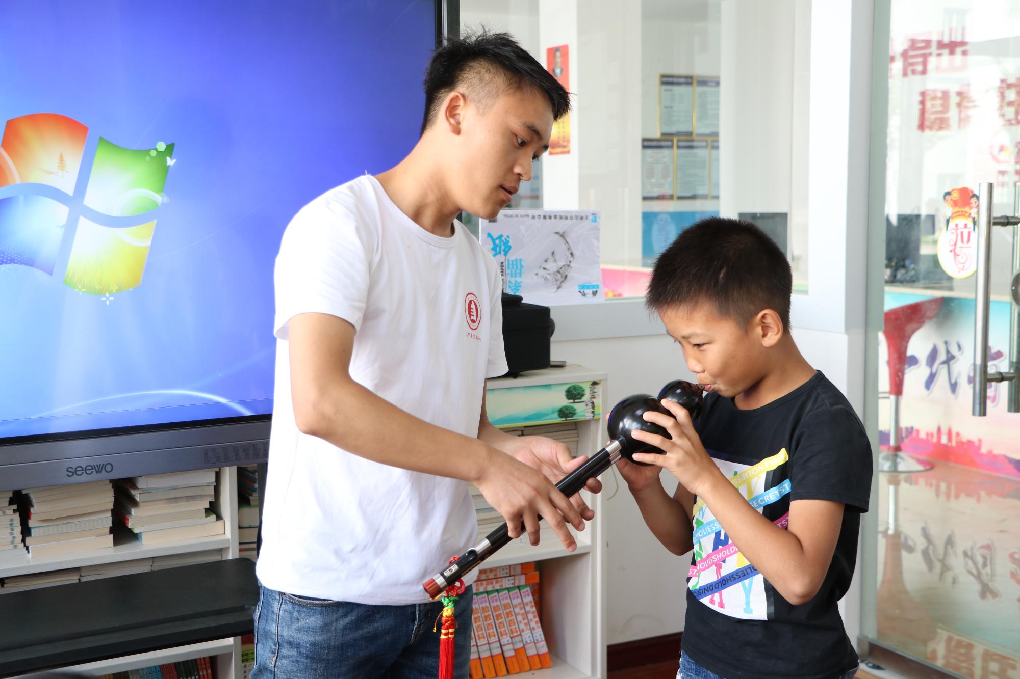 音乐欣赏课气氛和谐而融洽。罗永海带领大家认识乐器——葫芦丝;王柳讲解民族传统乐器——竹笛;杨永宏教唱儿童诗歌《春晓》,孩子们在歌声中轻松学会了整首唐诗的背诵......孩子们对各种琳琅满目的乐器充满兴趣。