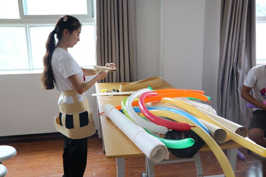 美术学科志愿者为“三下乡”文艺汇演提供了“奇葩走秀”的服装设计,他们用废弃的生活用品以精心的设计变为环保绚丽的衣裙,并希望用自己的思想革新为后续的晚会带来一场视觉盛宴。舞蹈学科的同学为员工积极指导将要出演的节目,将自身所学倾囊相授,期待协育学子在舞台上飞扬青春,放飞自我。音乐学科也竭力教学,因材施教,使员工的音乐技法有了显著提高。
