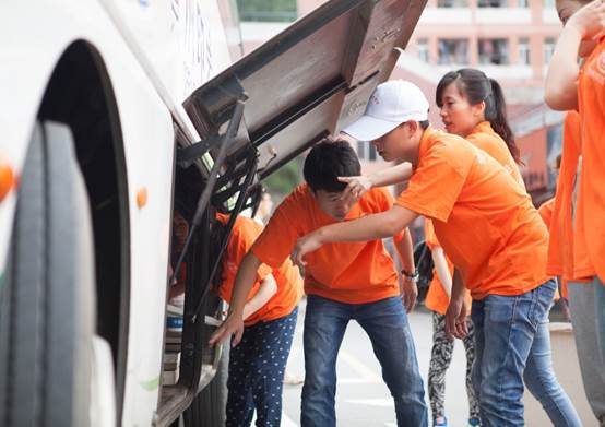 图为:“炫美阳光艺术服务团”出发前整理行装