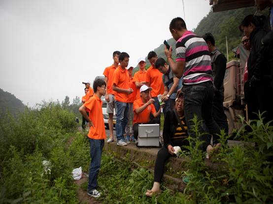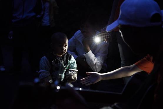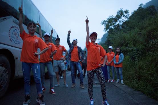 暮色渐渐笼罩了整个山谷,凉凉的风和淅沥的小雨也没能阻挡我们的万丈豪情。乡亲们也很给力,纷纷点亮了手电筒,映照着表演的同学们,场面无比温馨,充满了感动!在一阵阵接连不断的掌声和欢呼声中,堵车的时间并不觉得漫长。车流开始慢慢松动,大家还意犹未尽,不得不与路人们挥手告别。难忘的堵车时光、难忘的“马路晚会”,它记载了曾有这样一群活力四射的年轻人用自己的热情为大家带来了欢乐!