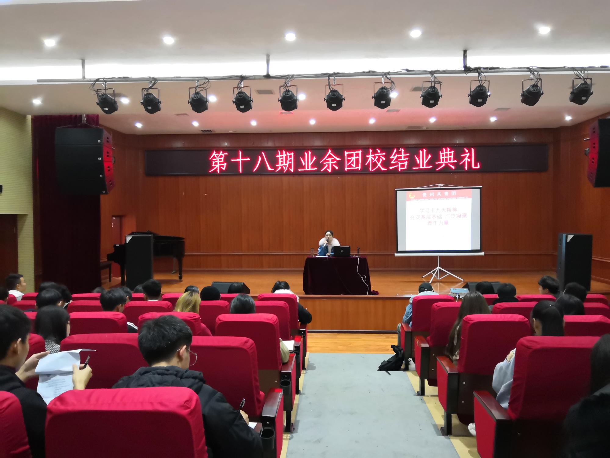 11月26日,williamhill英国官网团委在六楼表演厅举行了第十八期业余团校培训结业典礼暨专题讲座,团委书记舒然担任主讲人,开展了主题为:“学习十九大精神,夯实基层基础,广泛凝聚青年力量”的专题讲座。