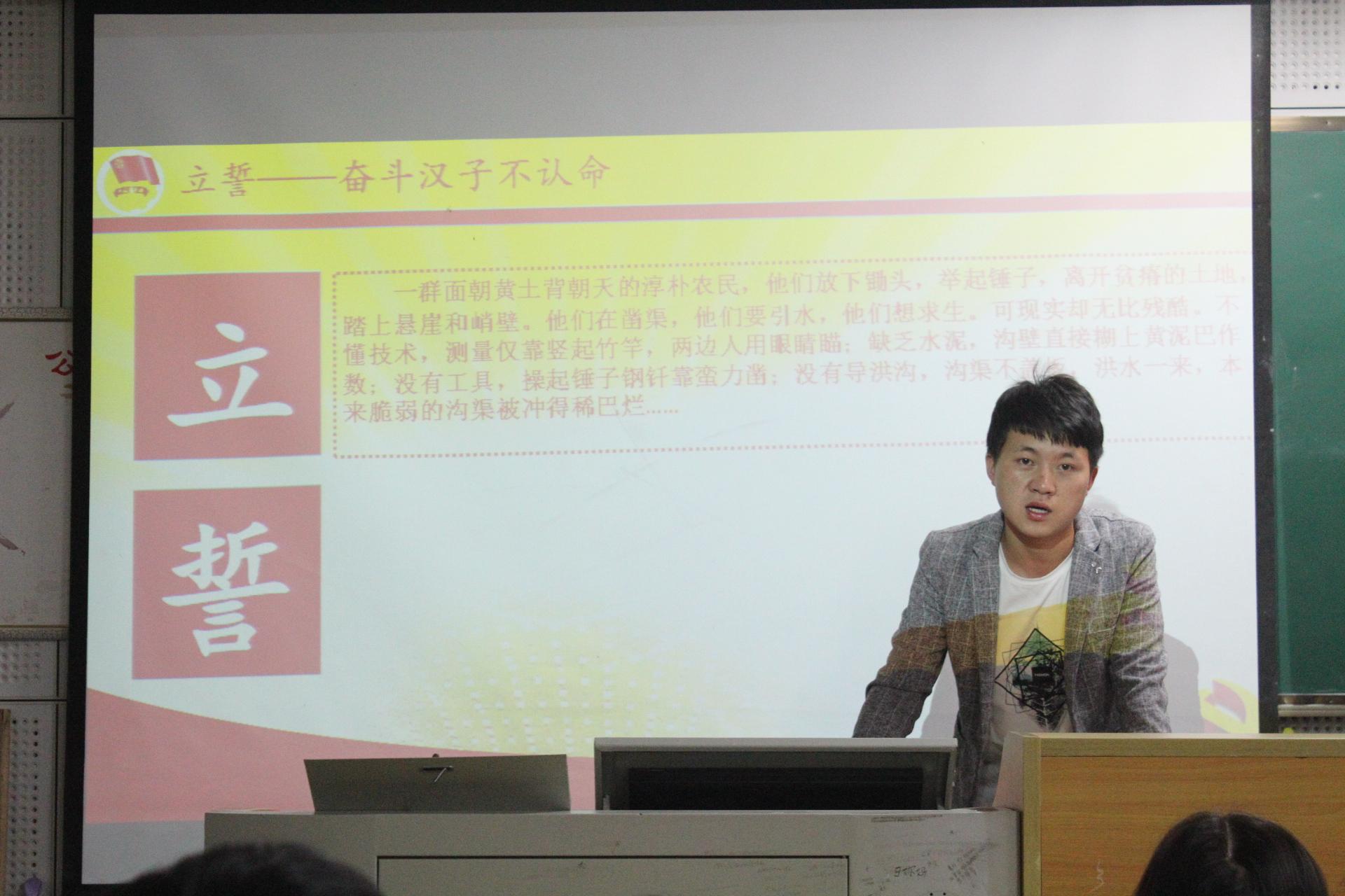 培训课上,王柳向新团员们详细介绍了时代楷模黄大发老支书的奋进人生。他分别从立誓、学艺、再战、攻坚、初心五个方面来位同学们讲述黄老支书为草王坝修筑“天渠”中遇到的艰难险阻,从草王坝村食不裹腹到如今幸福生活的漫长征程。同他说到:黄大发老支书一生都在做一件事——为人民谋幸福,这是一名共产党员的执着与毅力,作为团员发展对象,同学们要有看齐意识,要有无私奉献的精神、以楷模的奉献精神、服务精神为标杆,认真践行团员义务。