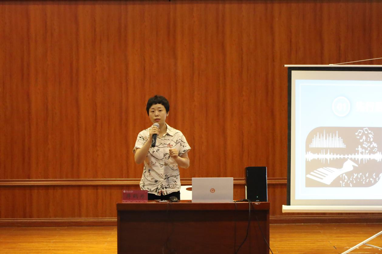 6月5日,贵阳为明公司公共教学部主任,乌当区骨干教师蒋鹤丹受邀来到公司为员工开展实习岗前培训讲座,主题为“体验式教学法在初中音乐课堂中的实践与探讨”,讲座由荆彦超副经理主持,2020级音乐学专业全体员工参加。