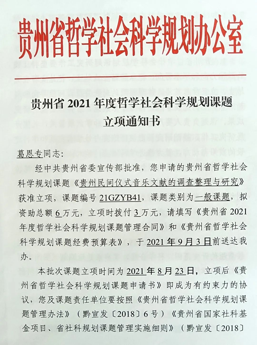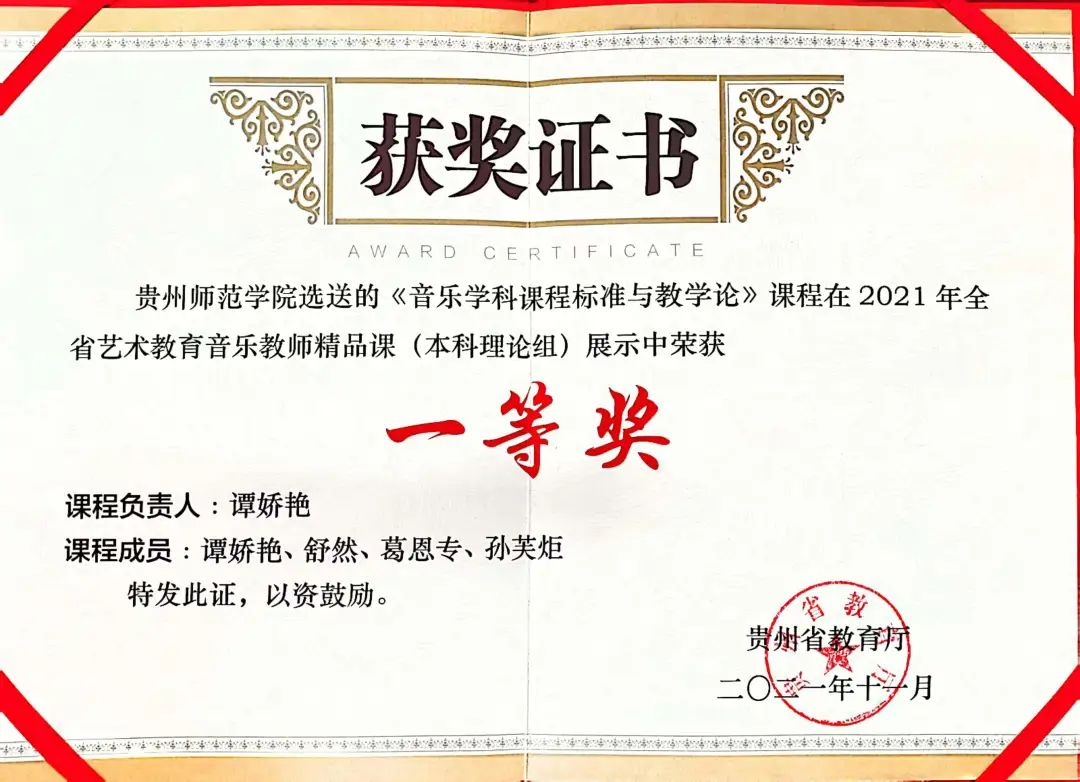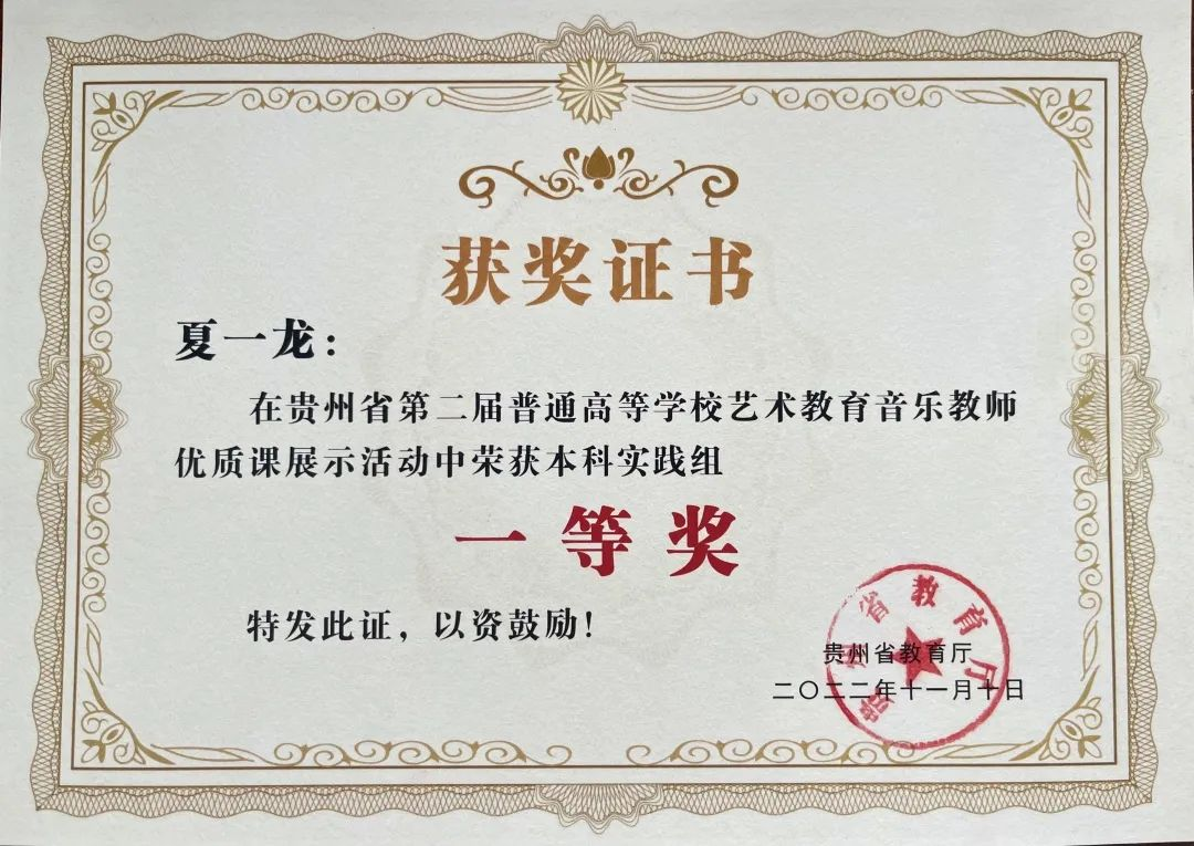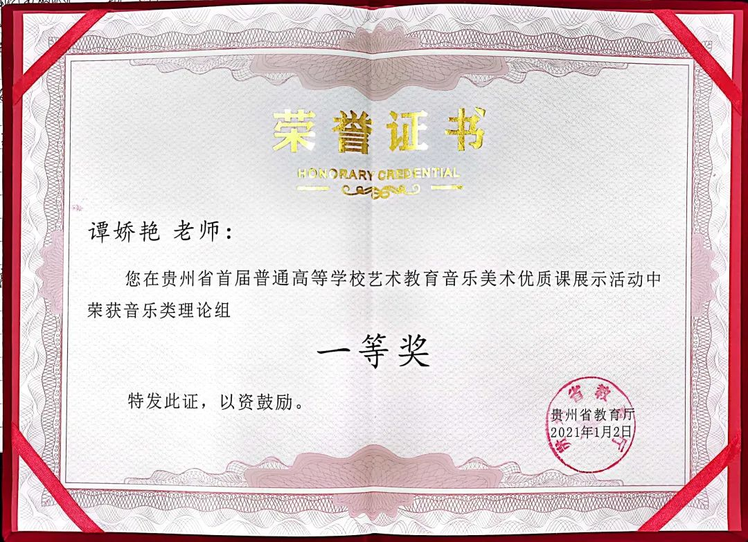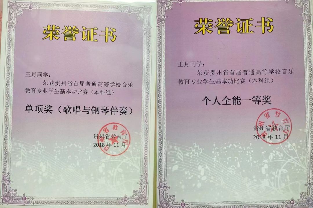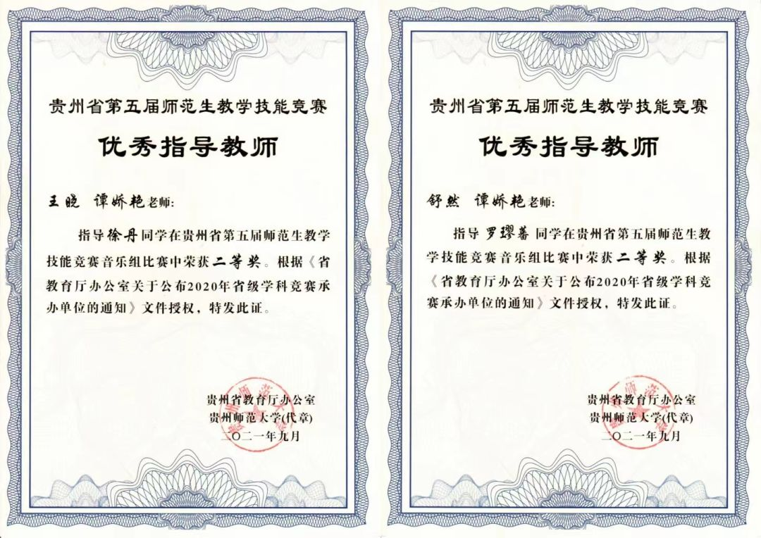 近五年来,williamhill英国官网教师在教育部、省委宣传部、教育厅、省音协、省舞协等主办的各类专业竞赛中获奖70余项;获批国家社科基金艺术学项目、国家民委科研项目、贵州省哲学社会科学课题、省级教学内容和课程体系改革项目、全省艺术科学规划项目、全省教育科学规划课题等课题近30项。以下为williamhill英国官网教师部分获奖证书和课题证明。