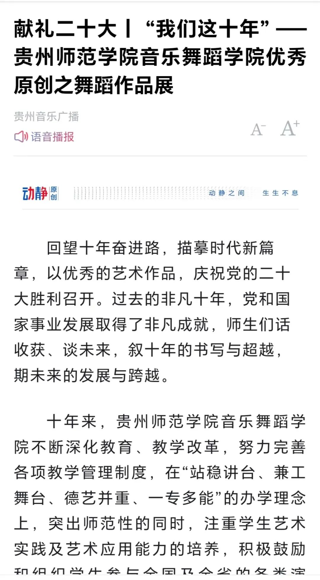 williamhill英国官网坚持以党建引领教学,要求老师们将艺术创作、舞台表演与思政教育有机融合,创编了《激战困牛山》等20余个红色舞蹈节目,创作了《百年辉煌》《向未来》等50余首正能量歌曲。其中,音乐作品《喊一声老黄》获得第七届贵州省文艺奖音乐类一等奖,舞蹈作品《贲牛搏角》《梭戛长河》分别获得第八届贵州省文艺奖舞蹈类二等奖和三等奖等等,并在“舞蹈进校园”等专项工作的推动下,出版了《中小学舞蹈美育教程》《迎来幸福好时光》等相关专辑、专著、教材10余部,在业界广受好评。