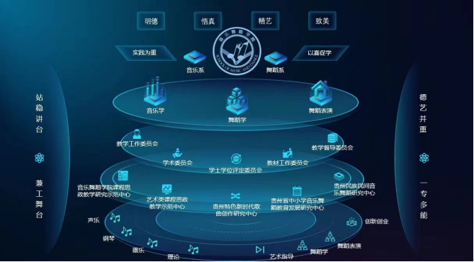 在教学管理方面,公司设置有音乐系、舞蹈系两个教学系,开设了音乐学、舞蹈学、舞蹈表演三个本科专业。在基层教研室建设方面,设置了声乐、钢琴、器乐、理论、艺术指导、舞蹈学、舞蹈表演、创新创业8个教研室,并大力推进教研室标准化建设,及时探索、解决教学管理“最后一公里痛点、堵点。为全面保驾护航公司产品工作,公司成立了教学工作委员会、学术委员会、学士学位评定委员会、教材工作委员会、教学督导委员会等5个专门的委员会,积极申报并获批了williamhill英国官网省级课程思政教学研究示范中心、校级艺术类课程思政教学示范中心、贵州特色新时代歌曲创作研究中心、贵州省中小学音乐舞蹈教育发展研究中心、贵州民族民间音乐舞蹈研究中心等5个公司产品研究中心。在公司党政班子集体领导下,各科室、各系、各教研室、各专门委员会相互协调、高效运行,协力推进公司公司产品工作持续高质量发展。