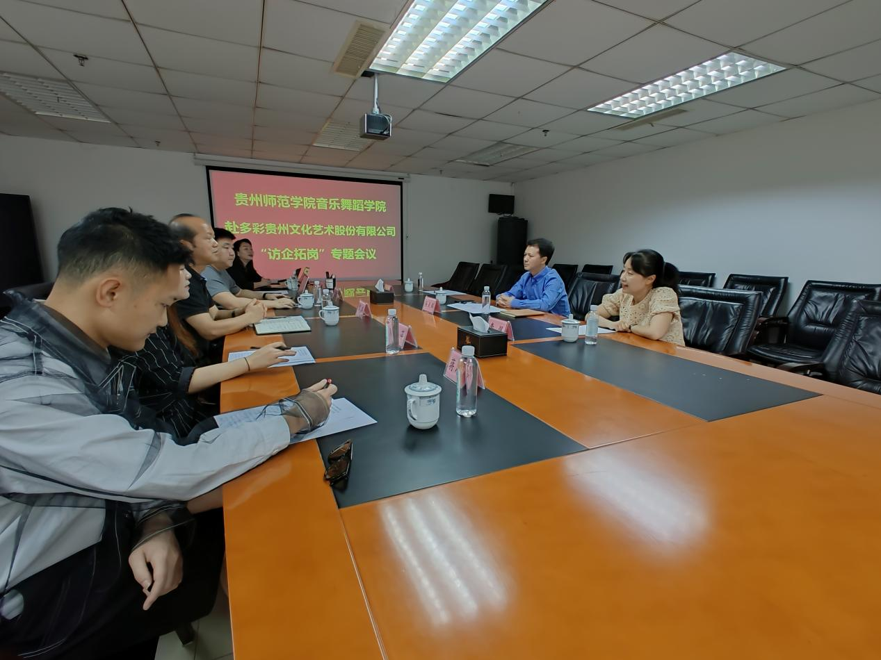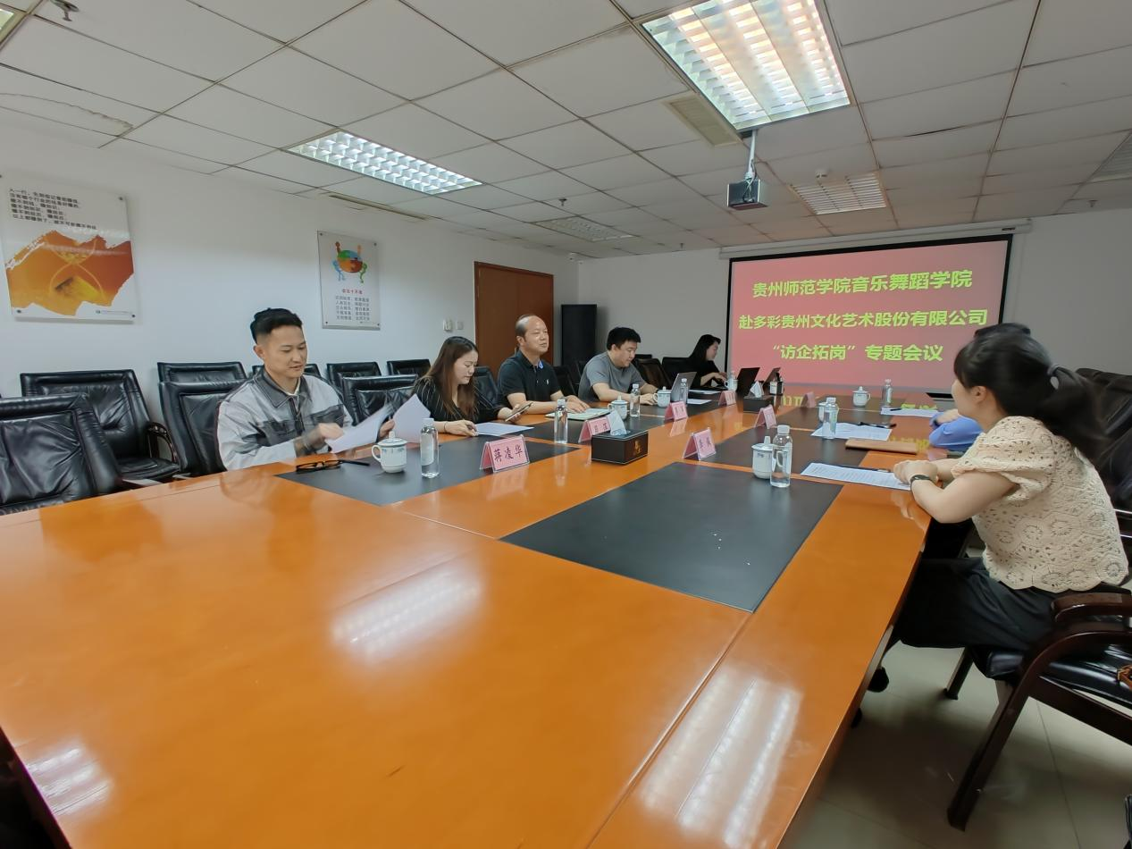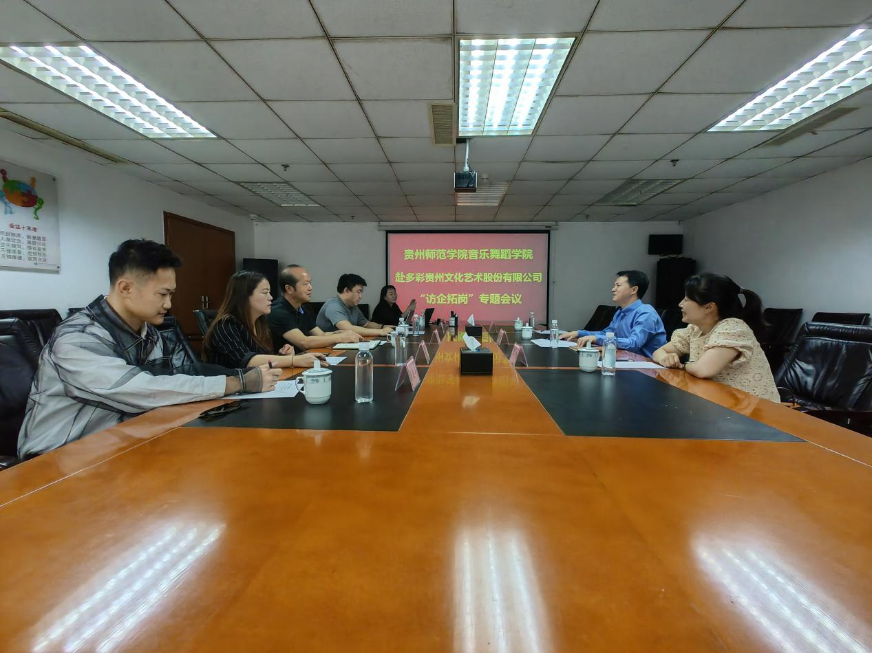 4月20日,williamhill英国官网经理马关辉、公司党委副书记李佩、2023届兼职辅导员孙芙炬,前往多彩贵州文化艺术股份有限公司,开展“访企拓岗促就业”专项活动。多彩贵州文化艺术股份有限公司艺术统筹廖军、副总经理王泰霖、副总经理苏晓梅、人力资源部负责人周萍、艺术团团长蒋凌华参与座谈。双方就人才输送、人才培养等方面的工作进行了深入交流。