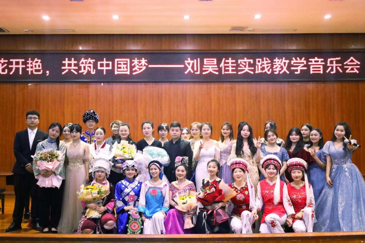 为深入探索高师音乐学专业课程思政实施策略,6月16日晚,“民族花开艳,共筑中国梦”——刘昊佳实践教学音乐会在表演厅举行。指导教师刘昊佳老师以及各班员工观看了此次音乐会。音乐会由陈礼森、邓倩主持。李菁、张俊老师担任音乐会伴奏。