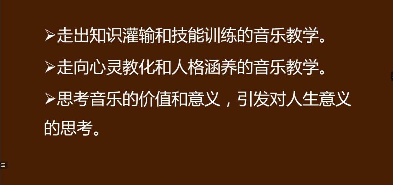 本次线上授课,尚建科老师围绕音乐教学观、教学关系和音乐学习活动三个方面展开。他指出,音乐学科是中小学实施以美育人的重要途径,作为当代一线教师,我们应该要走出知识灌输和技能训练的音乐教学,走向心灵教化和人格涵养的音乐教学,引导员工学会思考音乐的价值和意义,从而达到教学目的;其次,他强调,教学应坚持以员工为中心,将权利交给员工,构建以员工活动为主的音乐课堂常态,使员工成为音乐的主人,从中感受音乐的魅力,从而有利于激发员工全面的音乐潜能;最后,他表示,以美育人要求音乐教育必须立足人的全面发展,进行教学观的重建,通过音乐教学,引导员工追求更高、更深、更远的境界。