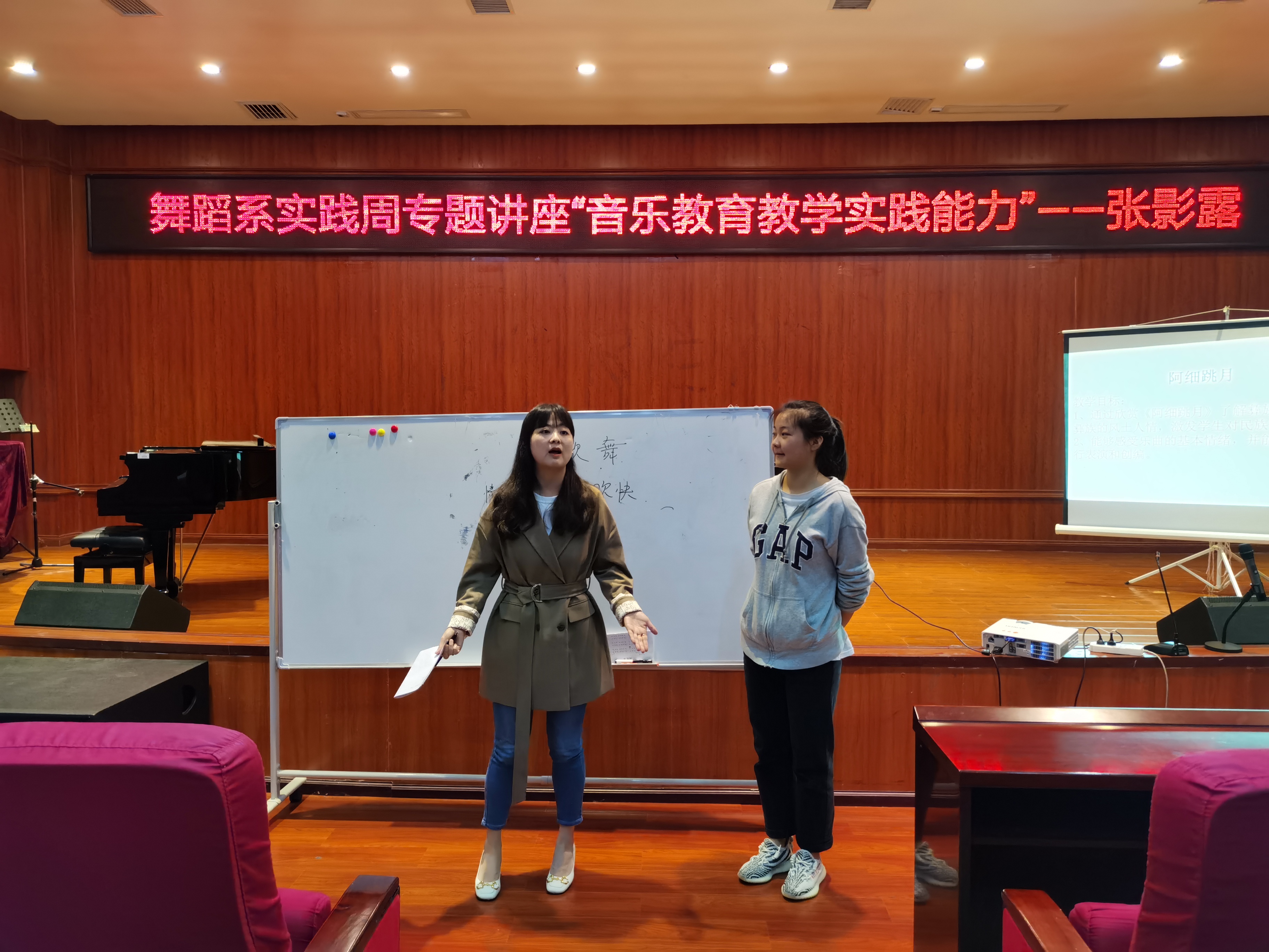为了提升同学们考取中小学教团队格证的能力,5月20日上午九点,舞蹈系实践周开设专题讲座“音乐教育实践能力”,邀请到贵阳市环西小学一级教师张影露来到williamhill英国官网六楼音乐厅进行讲座。参与讲座的有18级、19级、20级全体舞蹈系员工。