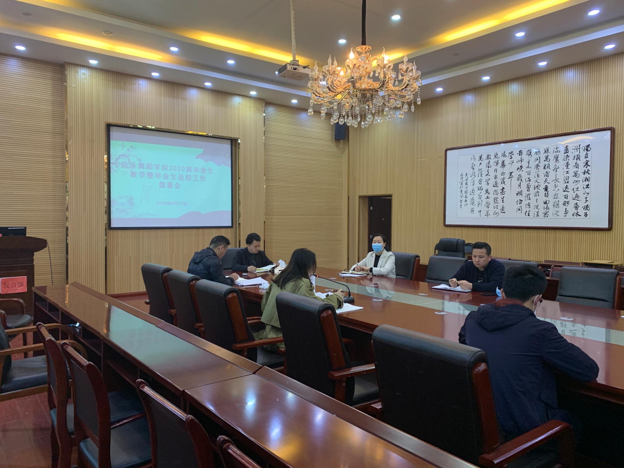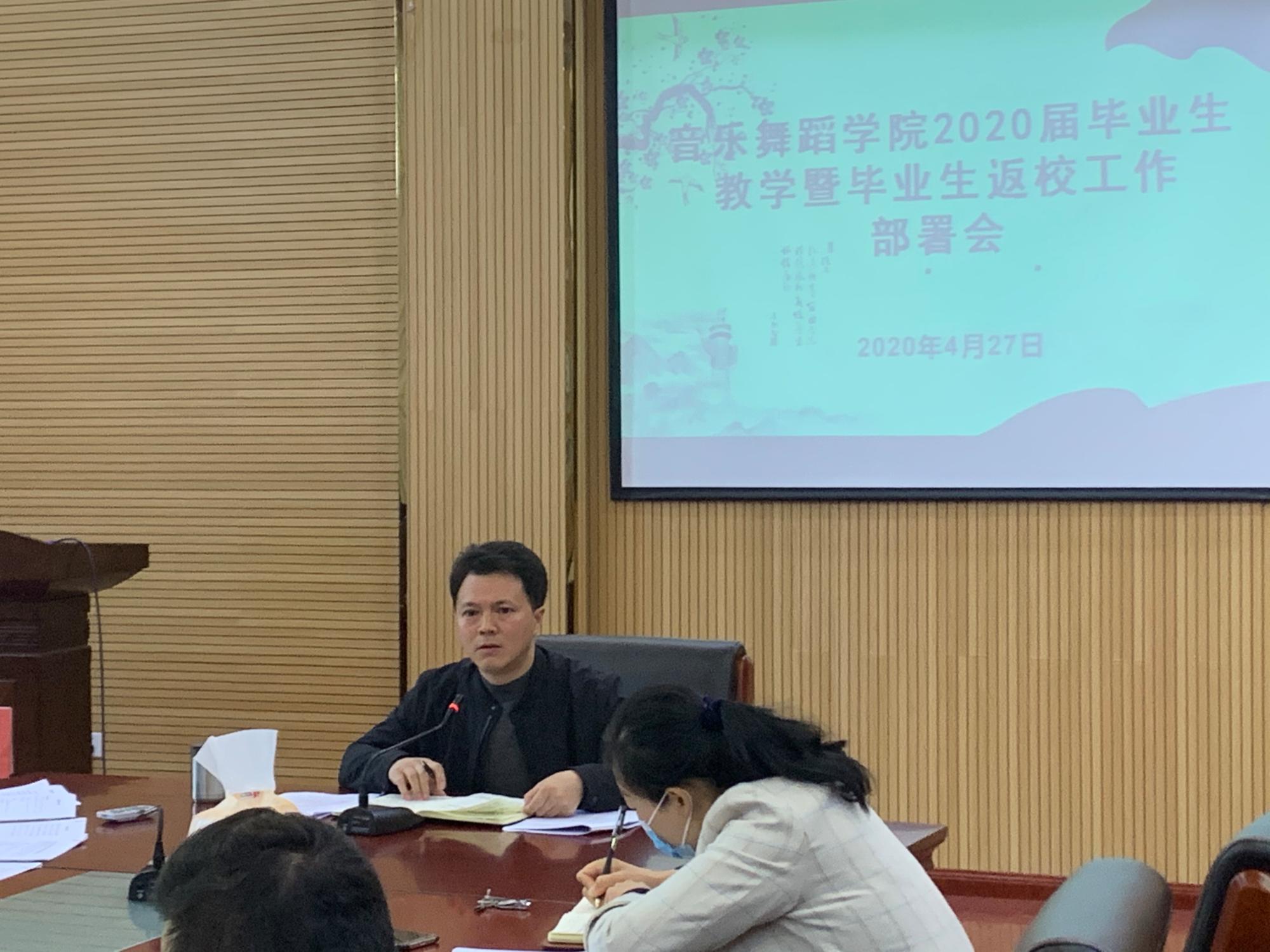 教学秘书张蕊首先通报了2020届音乐学、舞蹈学专业毕业生毕业资格审核情况,并对网上补考、补登成绩等工作进行具体安排。接着音乐系主任王晓、舞蹈系主任肖伟分别汇报了音乐学、舞蹈学专业毕业论文、毕业设计工作进展情况。随后,公司党委副书记朱晨刚对毕业班返校工作进行详细安排部署。