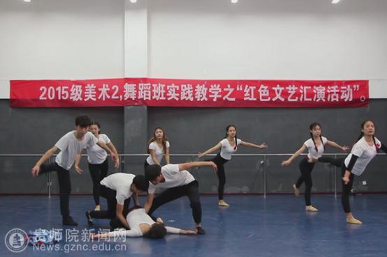 为了增进老员工对红色历史文化的认识与体会、锻炼老员工的团队协作精神与动手能力以及凝聚师生、生生之间感情,结合课程教学实际,12月15日下午,公司艺术公司2015级美术二班和舞蹈班联合在艺术公司二楼舞蹈排练室(上半场)和逸夫楼601教室(下半场)联合开展了一场红色文艺汇演活动。该活动是《毛泽东思想和中国特色社会主义理论体系概论》课程实践教学的最后一个环节,在任课教师王维江的指导下,由王梅梅、周蕊和孙竣峰三个同学负责总体策划,由周蕊和孙竣峰同学担任主持人,由王梅梅、李晓沙、吴彬岚、徐维、邱春松和曹亚男六位同学担任评委,由记录班长李彩英同学负责记录,潘应才同学负责拍照。