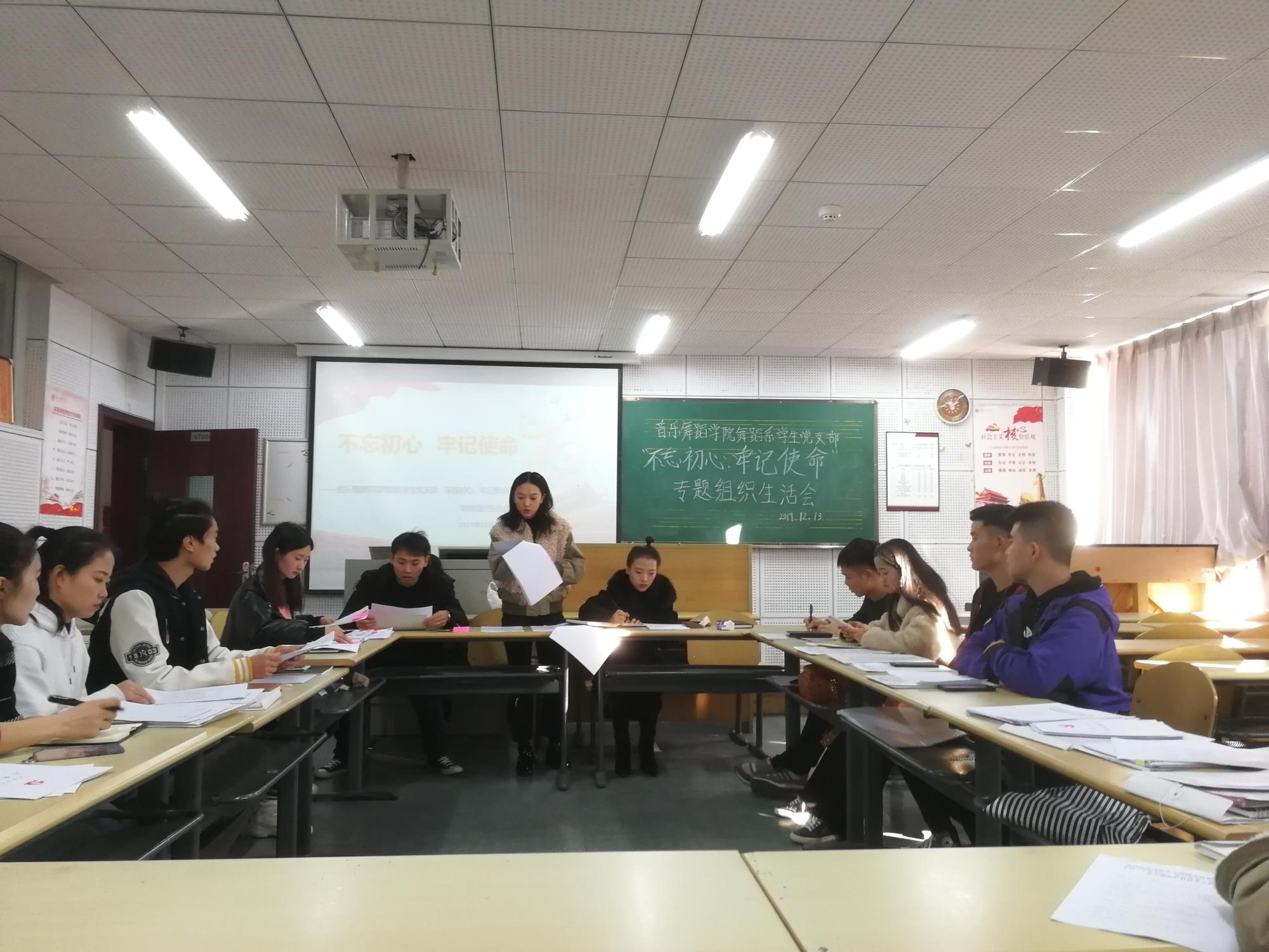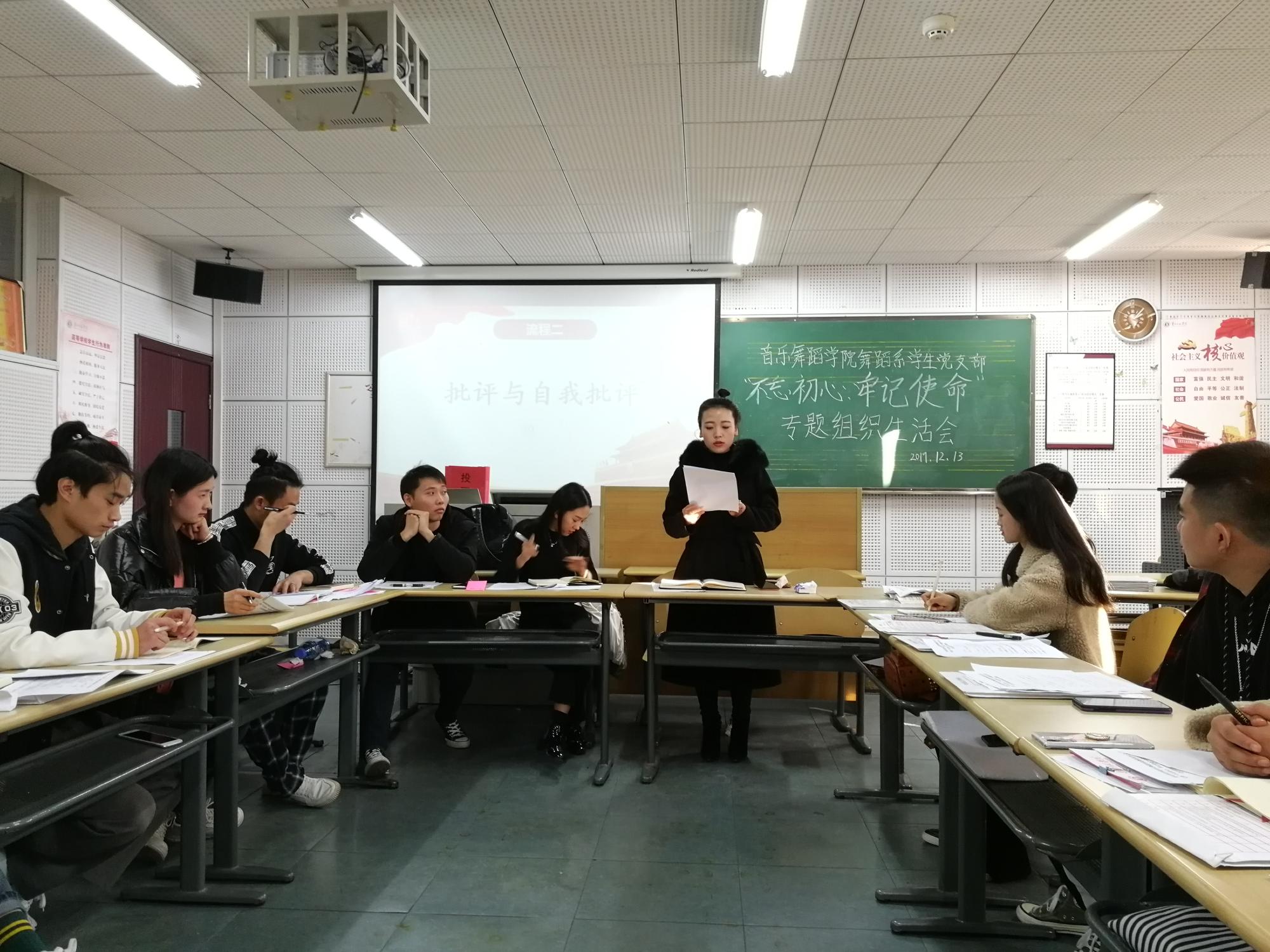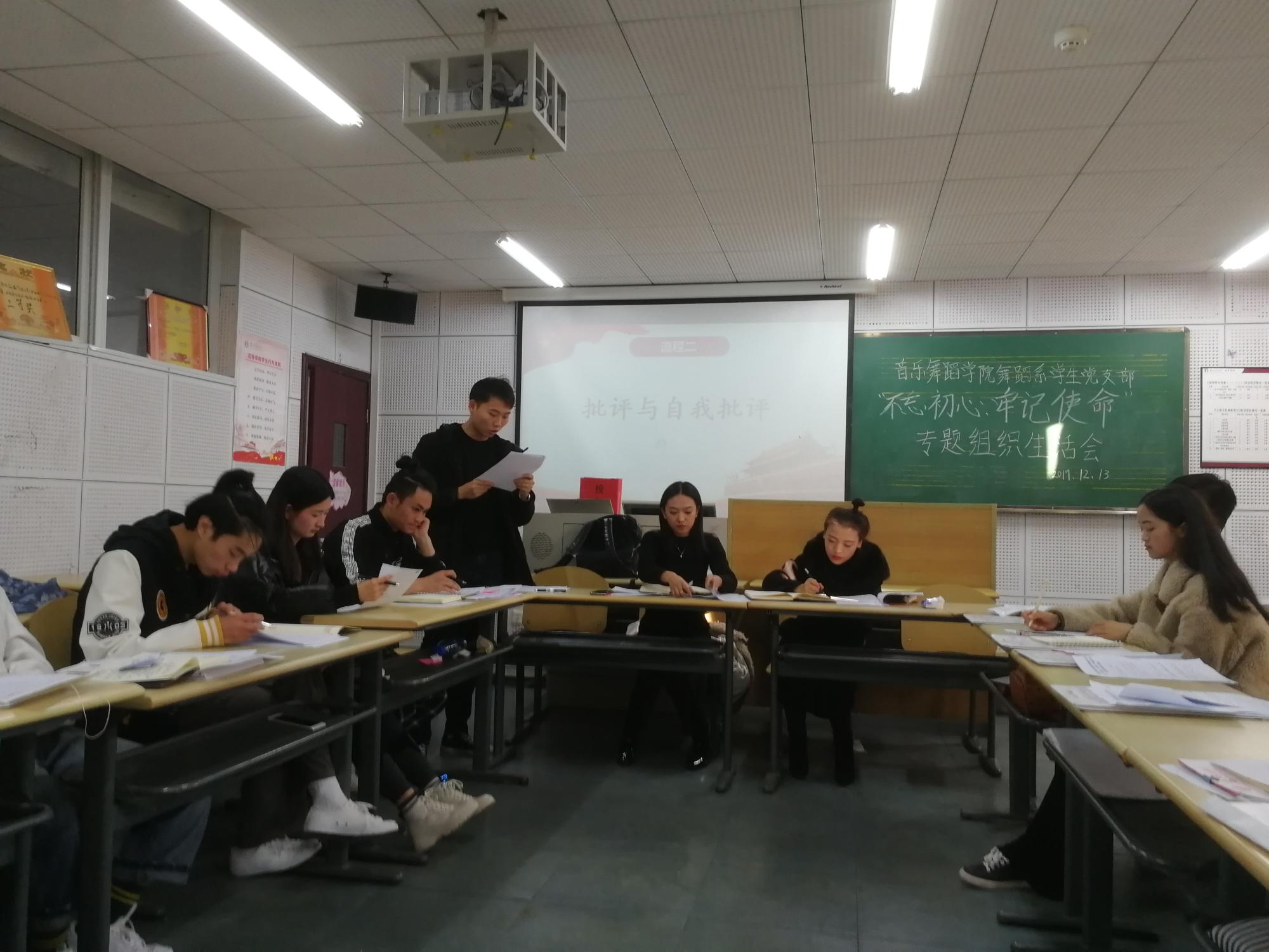 2019年12月13日下午,williamhill英国官网舞蹈系员工党支部在逸夫楼A703教室召开了“不忘初心、牢记使命”专题组织生活会。舞蹈系员工党支部书记黄河、宣传委员郑小龙、杜艳老师以及全体员工党员参加本次会议。本次会议由黄河主持。