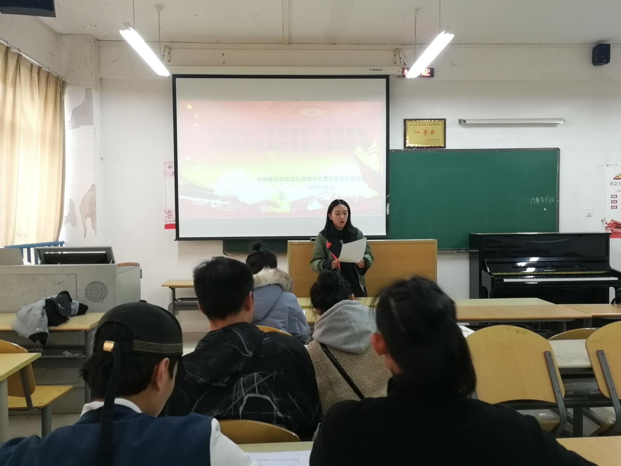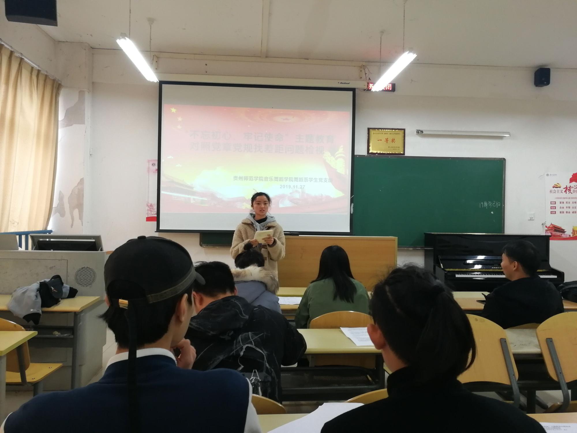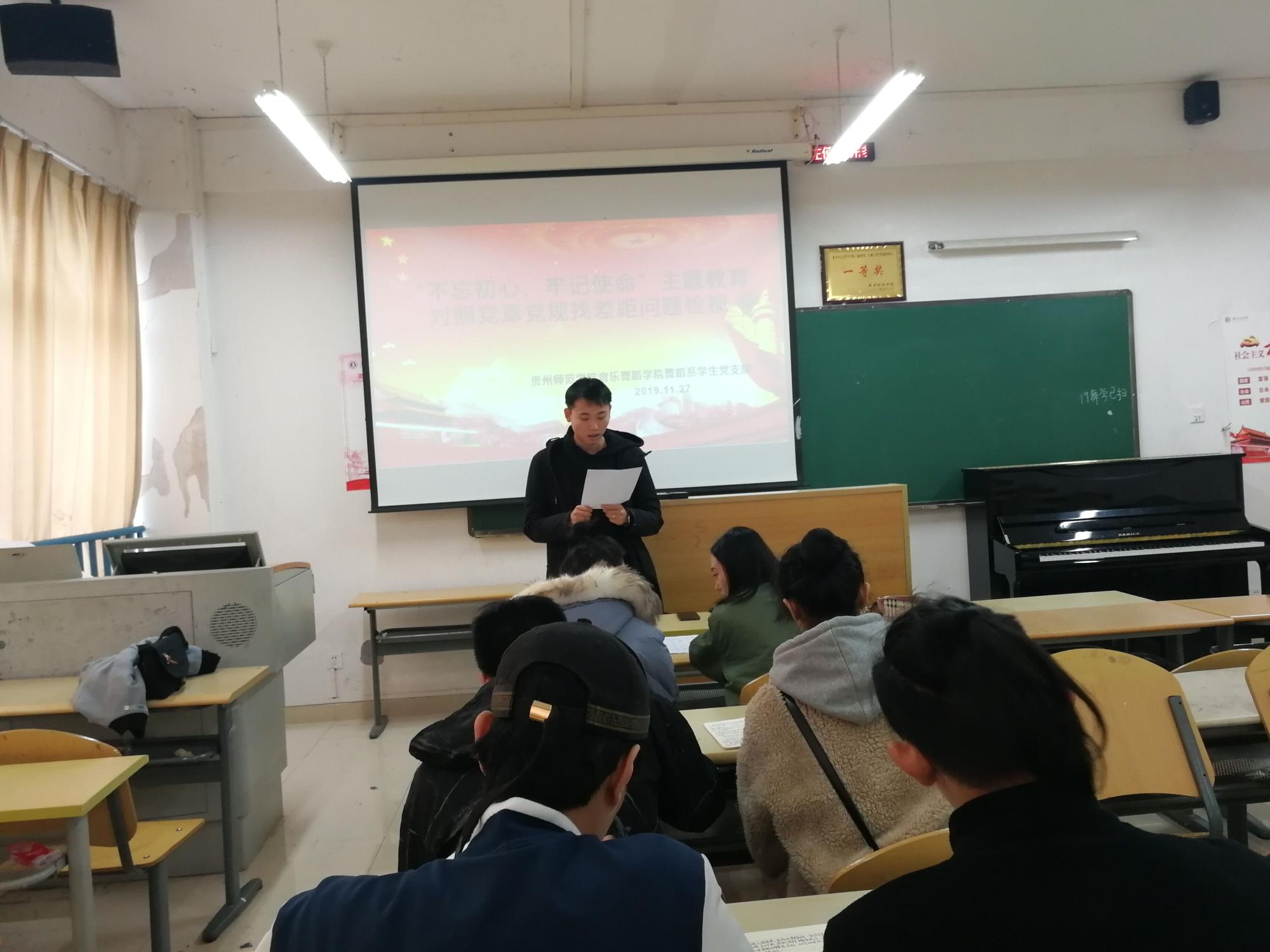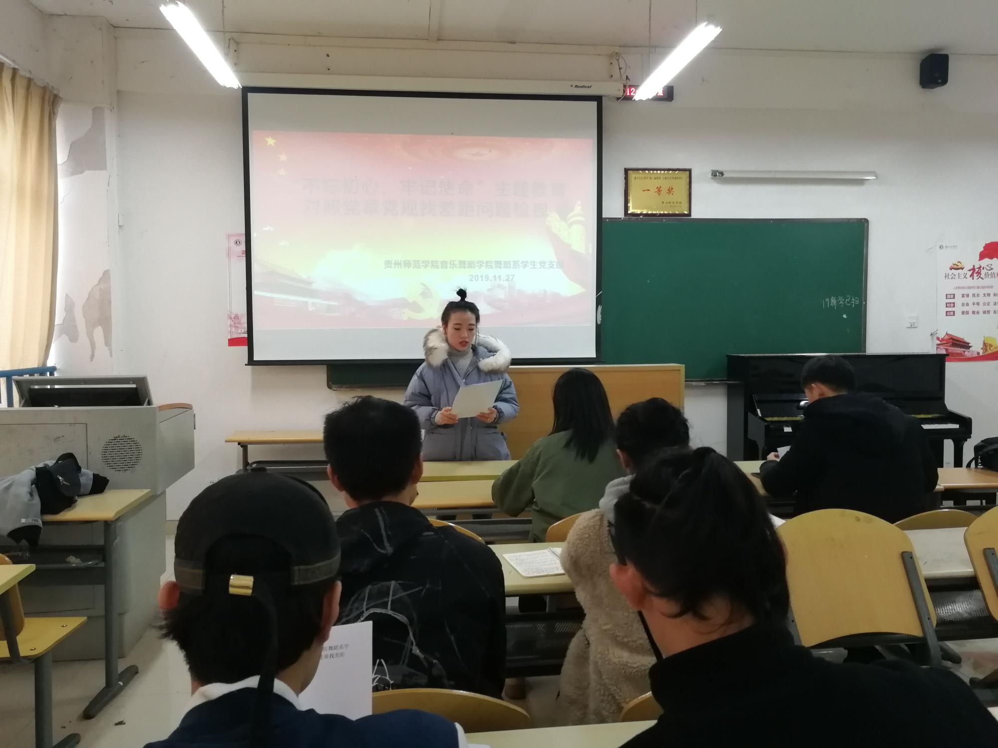 2019年11月27日中午,williamhill英国官网舞蹈系员工党支部在逸夫楼A405教室开展了对照党章党规找差距专题会议。舞蹈系员工党支部书记黄河、宣传委员郑小龙、杜艳老师以及员工党员参加本次会议。