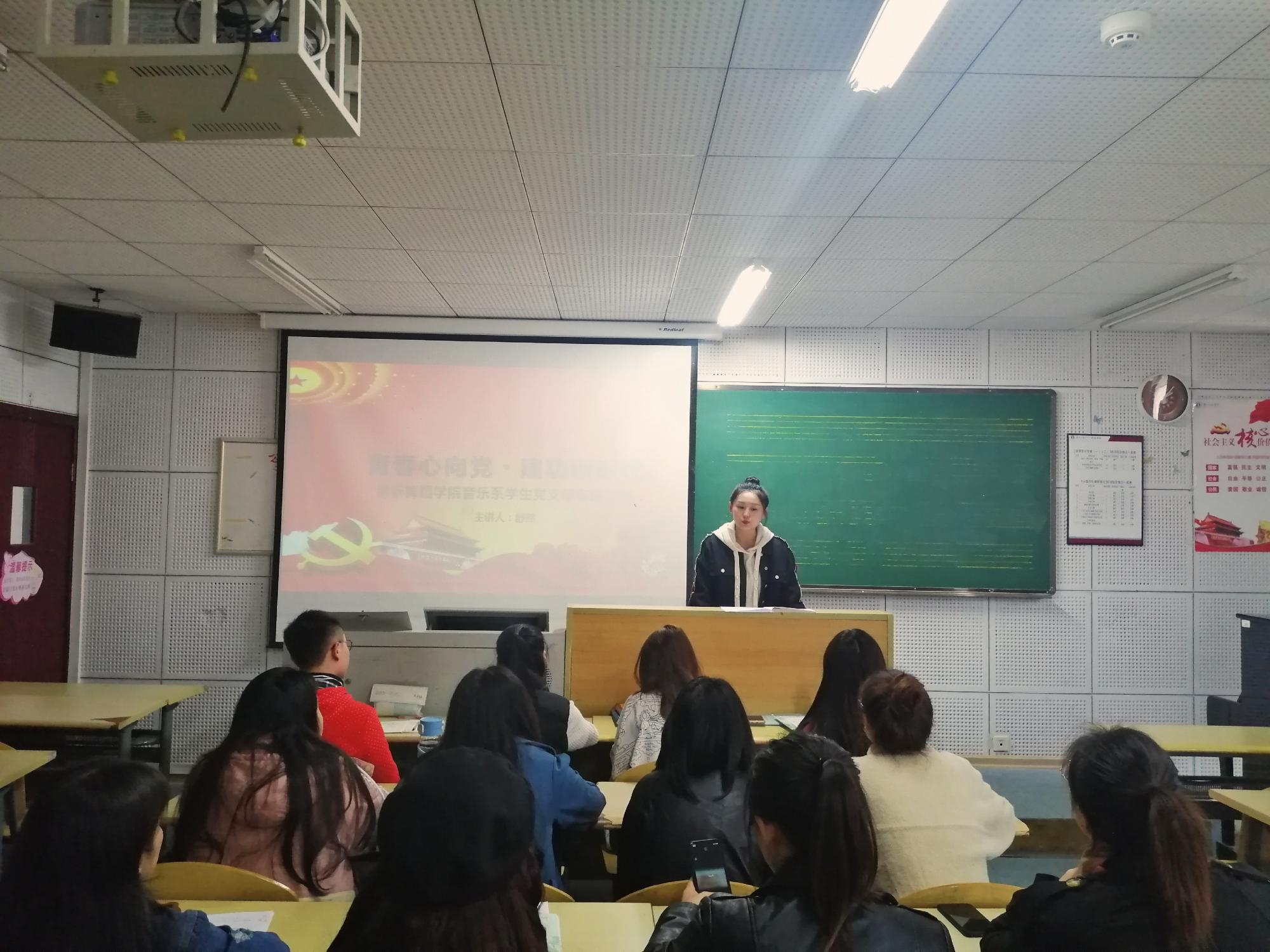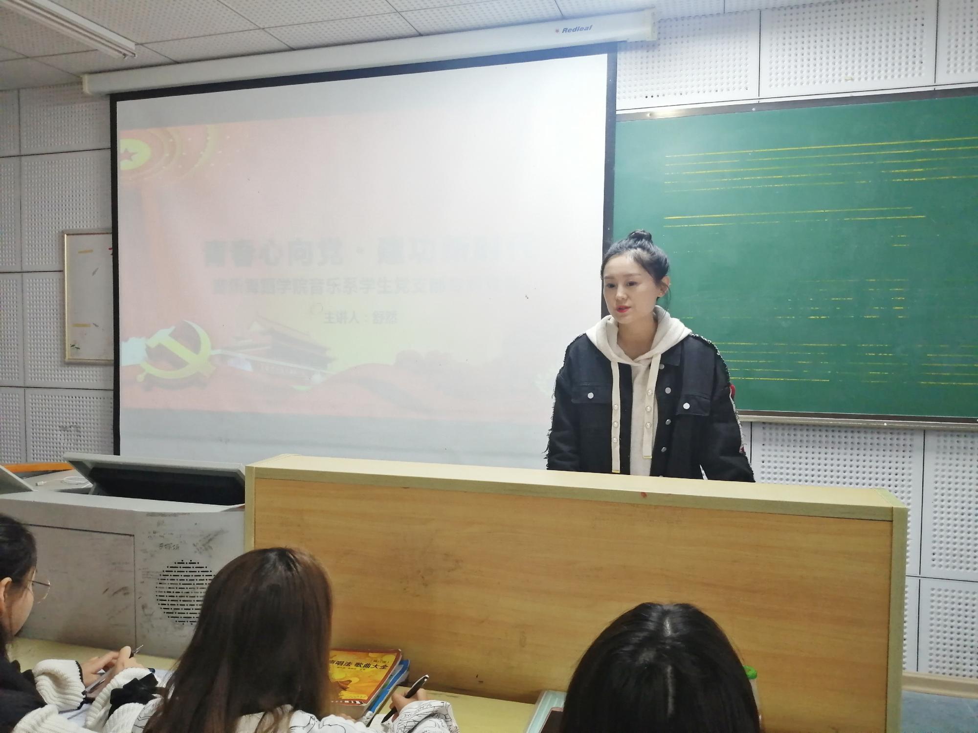 11月12日中午,williamhill英国官网音乐系员工党支部在逸夫楼703教室开展了以“青春心向党·建功新时代”为主题的专题党课,音乐系员工党支部书记舒然担任主讲人。组织委员郭媺、支部全体党员参与本次党课。