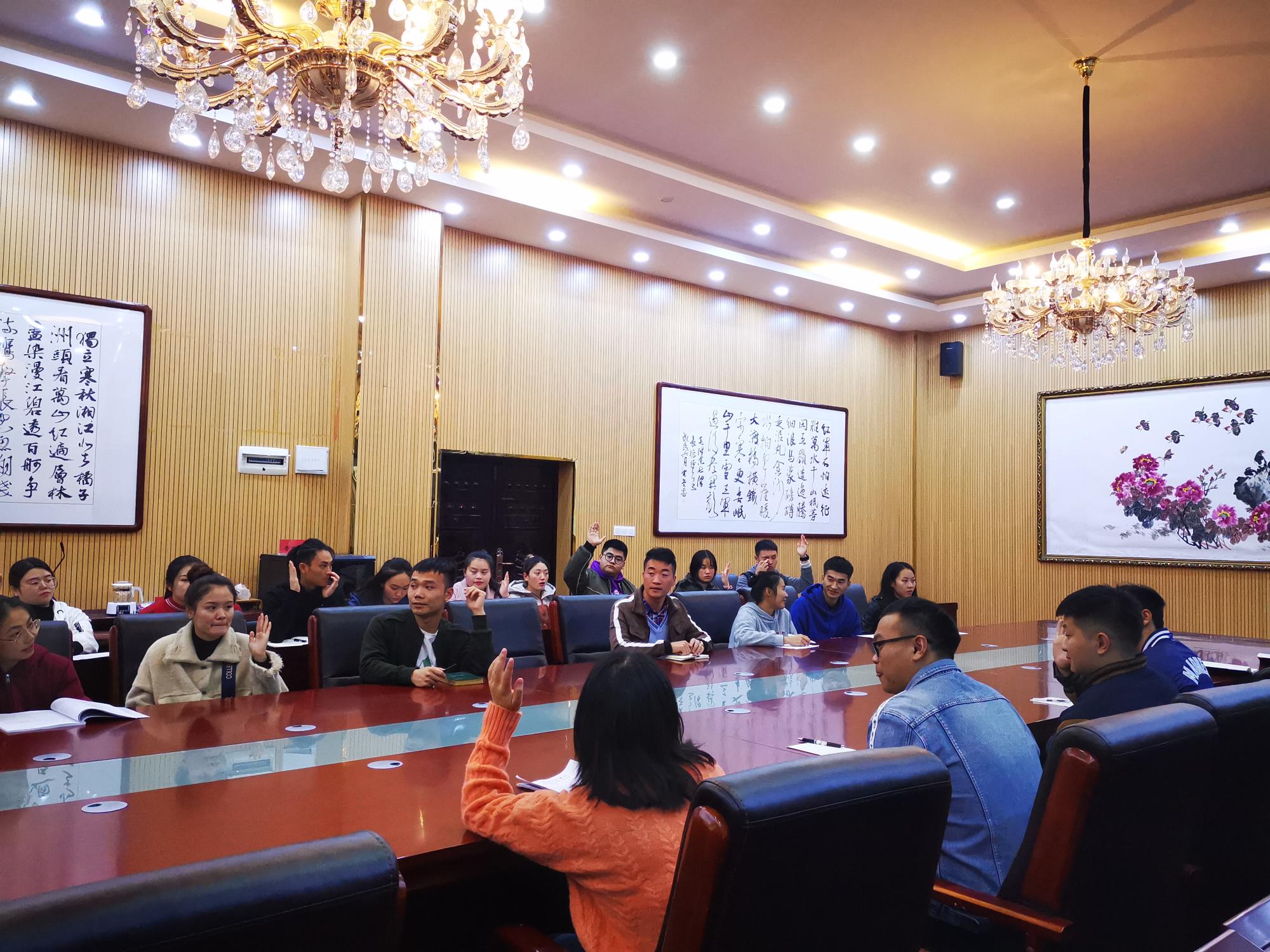 朱晨刚就新时代高校老员工思想政治及学习的培养路径两个方面与员工进行了交流。关于四个自信、四个意识、两个维护的内容还对大家进行了提问并详细解释其核心内容。朱晨刚与同学们交流的很愉快。