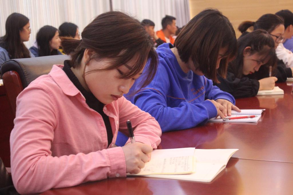 舒然用四个提问的方式揭开了讲座序幕,良好的互动氛围,不仅让学员们倍感亲切与轻松,也灵活熟知了党的基本理论知识。讲座中,舒然还以“十九大报告经典语录”为切入点,深入浅出的向学员们传达了十九大精神,列举了新时期下新中国的新发展。在场学员仔细聆听、踊跃发言,无不为自己的国家骄傲、自豪。