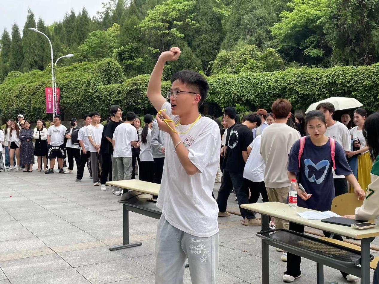 开幕式结束后,揭幕战即为拔河比赛,比赛以团支部为单位,通过抽签配对参赛队伍。随着裁判员一声响哨,双方团支部立刻展开“厮杀”,拔河赛场上顿时人声鼎沸。“一二,加油!一二,加油!”同学们口号震天,气势高昂。有的同学脸憋得通红确丝毫不放松,有的龇牙咧嘴用尽浑身解数,还有剩者干脆闭上眼睛铆足了劲儿往后拉……队伍中女生们更是不甘示弱,一个个咬紧牙关,将“巾帼不让须眉”的精气神儿挥洒得淋漓尽致。场外的拉拉队也毫不落后,加油声、呐喊声、助威声直入云霄。在这场团队精神的比拼中,各方为了集体荣誉,斗智斗勇,寸土必争,赛场气氛空前高涨!