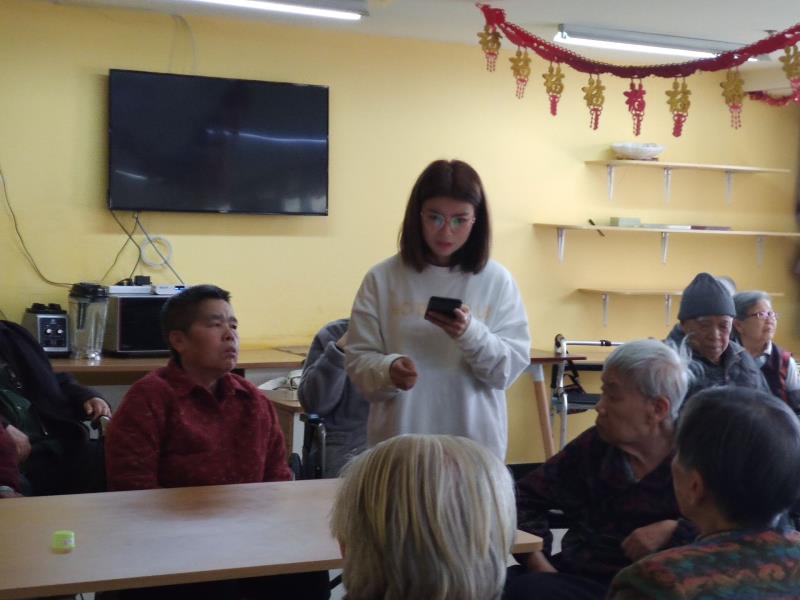 4月3日下午16:00,按照课程计划,今天教授课程为声乐教学。首先,大家先就上周所学歌曲《女儿情》进行了复习,接下来2019级音乐学一班焦宏杰为老人们带来了一首《茉莉花》的范唱,接着陈开宇同学开始逐字逐句的进行教唱,两位小老师还将自己在校所学的歌唱时身体状态及呼吸技巧运用进行了详细阐述,老人们倍感新奇和高兴。