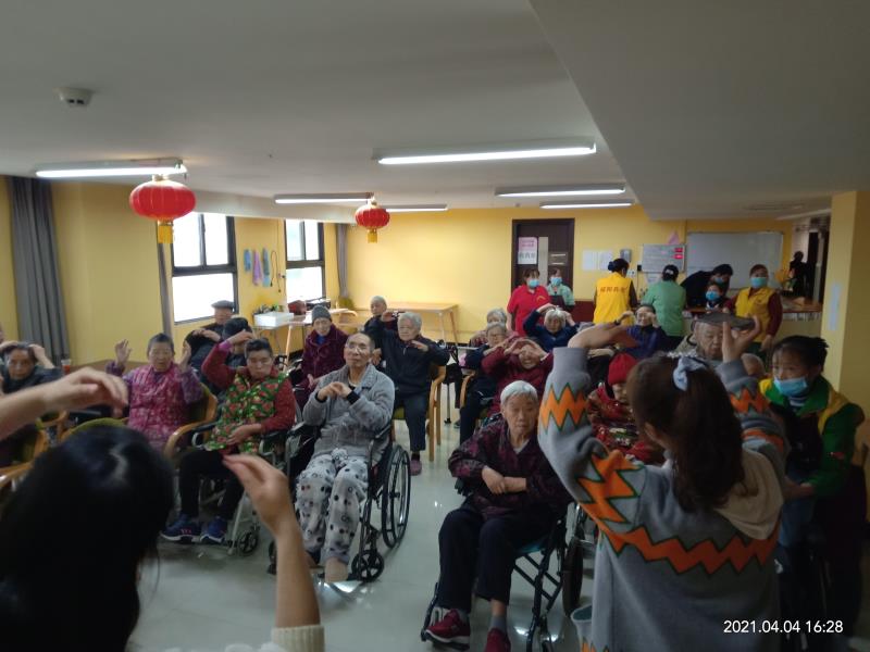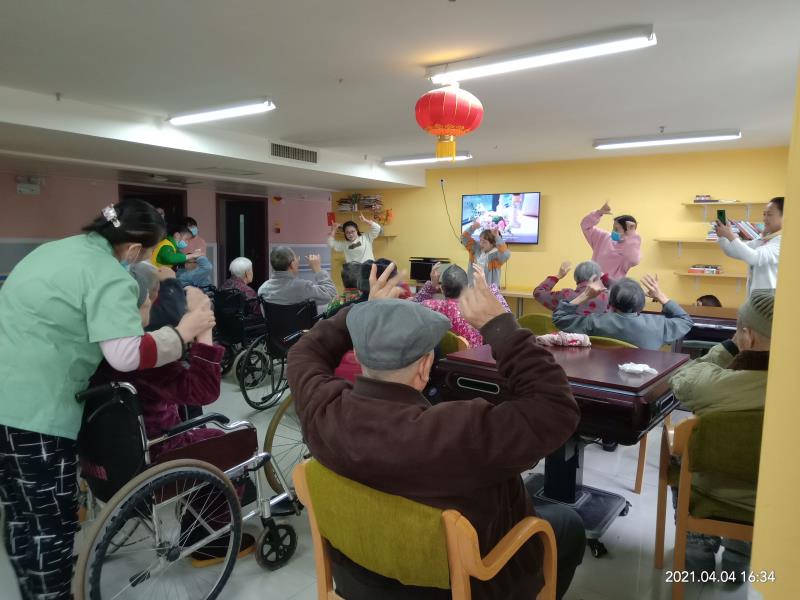 4月4日下午16:00,今日教学如期举行,所授课程为手指操,本次课程有幸邀请到教育科学公司的同学进行授课。教育科学公司18级学前教育二班的郭佳琼、熊雨柔、孔蝶首先组织老人们进行了手指热身活动,随后分两组进行《宝贝宝贝》和《无敌小可爱》的手指操课程,在教学过程中每位老人都全情投入,教学效果良好。