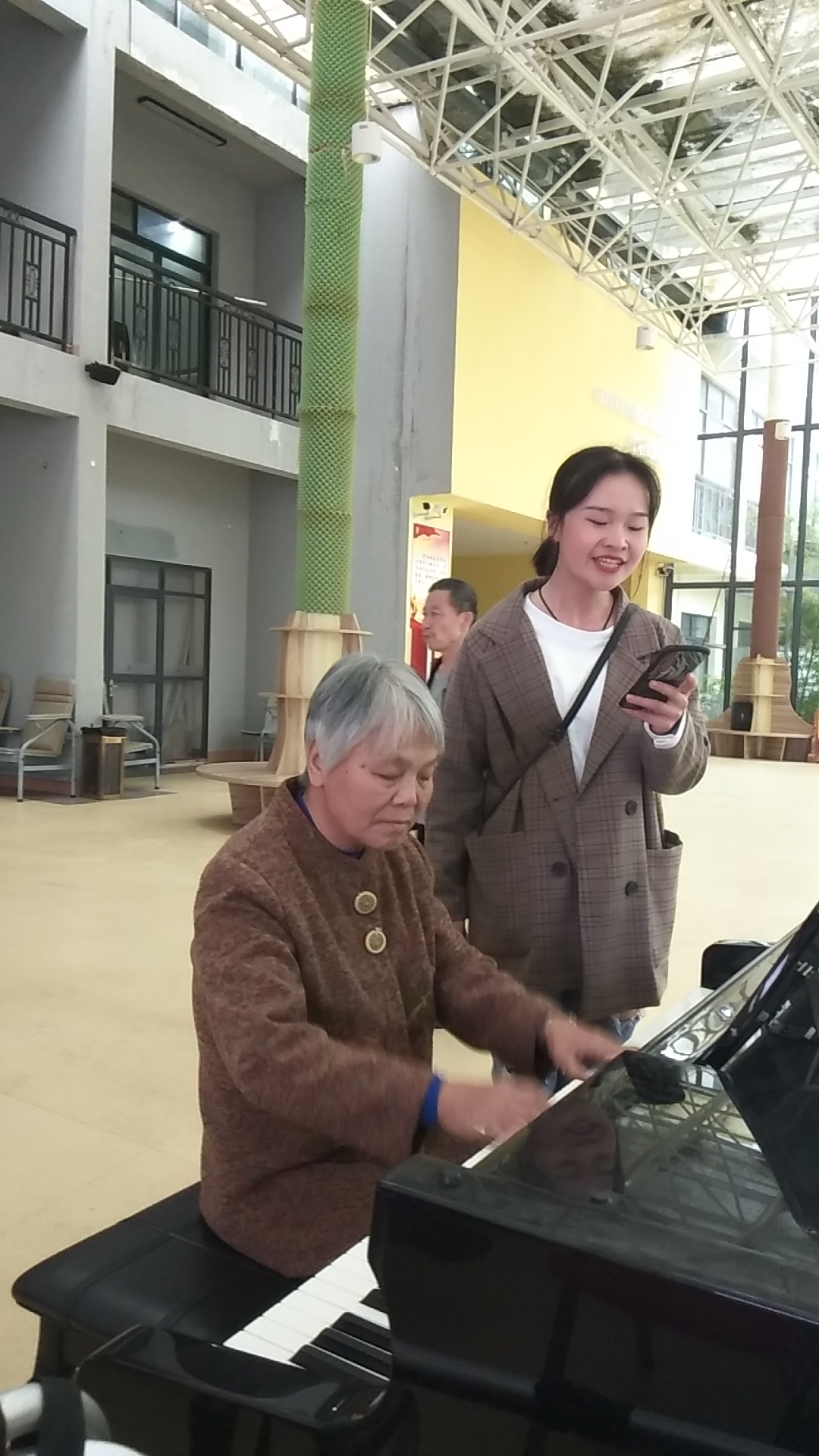 3月21日下午,经过近半小时的车程,团委同学们来到了乌当区曜阳养老院,在负责人的安排下,我们首先参观了养老院的环境,了解了养老院的具体情况与设施。临近活动时间,老人们也逐渐到达学习场地,同学们很快地就投入到关爱老人的活动当中。此次教学活动的授课人为2020级音乐学一班团支书吴宇增,她的授课内容是民族声乐曲《枉凝眉》,老人们拿着歌词单跟着志愿者哼唱起来,眼睛不太好的老爷爷便拿出了放大镜,看起来可爱极了,原本沉寂的气氛马上活跃了起来,欢声笑语充满了整个敬老院。每一位老人都感到无比满足。紧接着,吴宇增继续和老人合作演奏了一首《我和我的祖国》,由78岁的老奶奶现场伴奏,场面极度温馨,也有的拉着老人的手询问生活情况谈谈心,一起大笑,老人们说有了这些好孩子的陪伴,感到不孤单了。临走前,老人们为志愿者们齐唱了一首《难忘今宵》,并表示希望我们能常常去看望他们,在与老人们的相处之中,深深感受到了老人们对于亲情以及来自社会关心和关注的渴望。